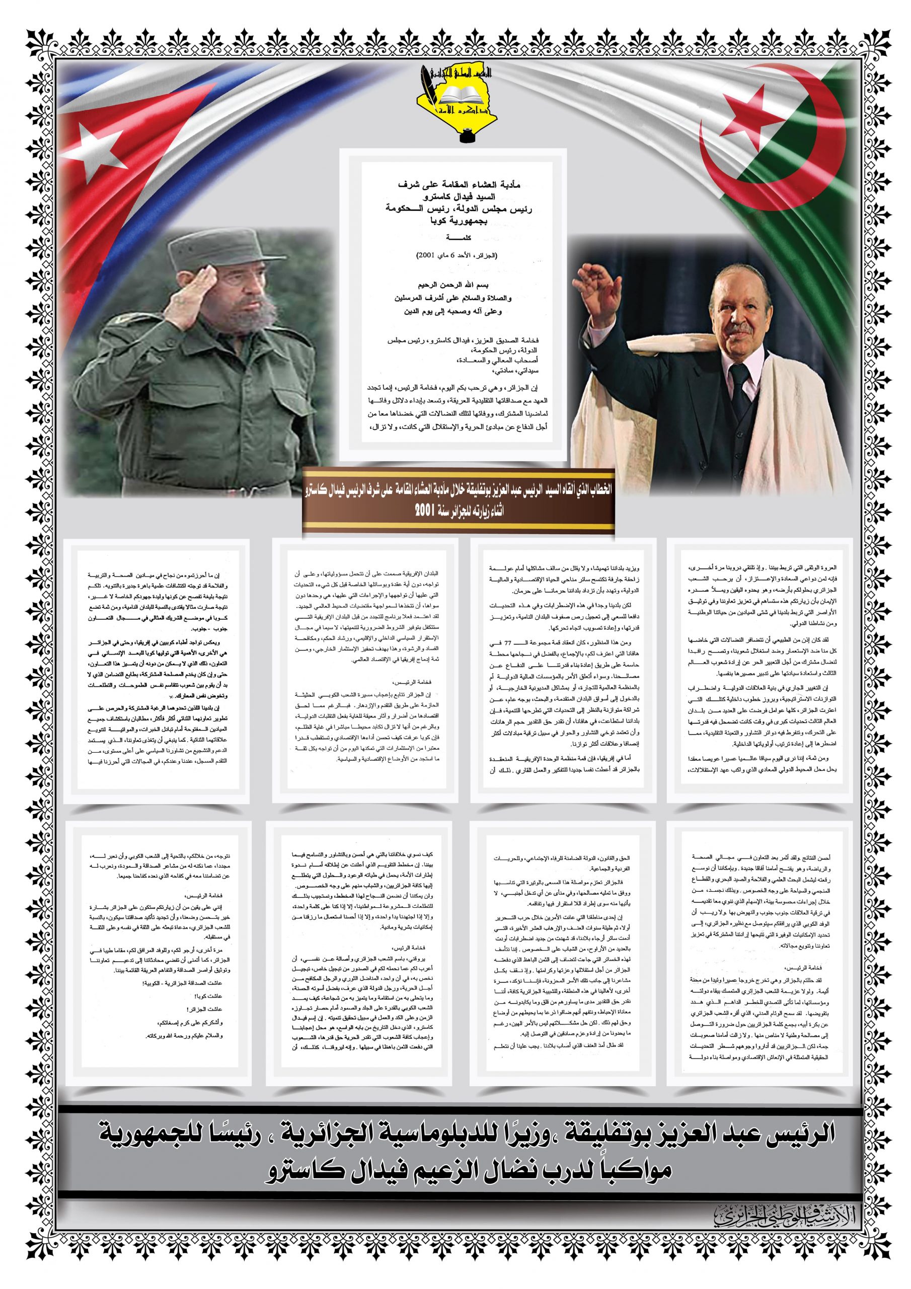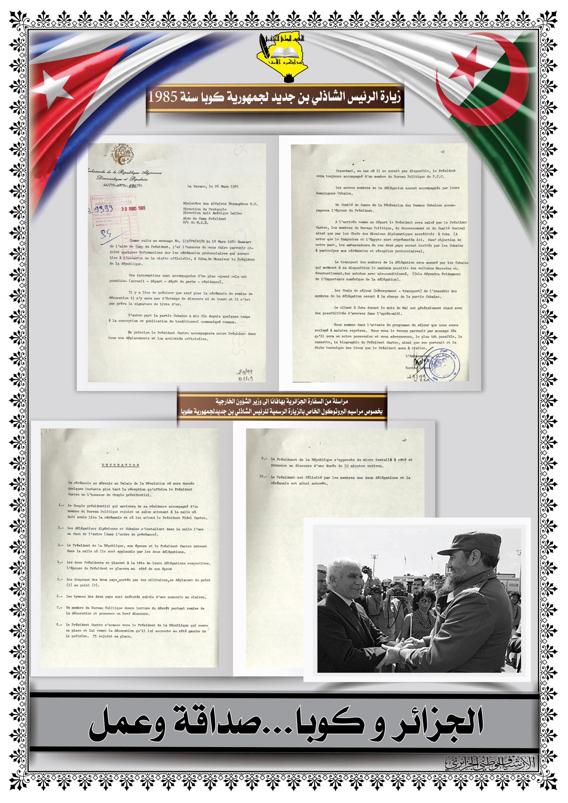 على اثر وفاة الزعيم وأب الثورة الكوبية فيدال كاسترو بتاريخ 25 نوفمبر 2016 قامت مؤسسة الأرشيف الوطني بإعداد معـرض تناول هذه الشخصية التي ساندت الثورة الجزائرية. والتي حولت الحلم الثوري إلى حقيقة حيث كان الزعيم فيدال كاسترو صديقا للجزائر.