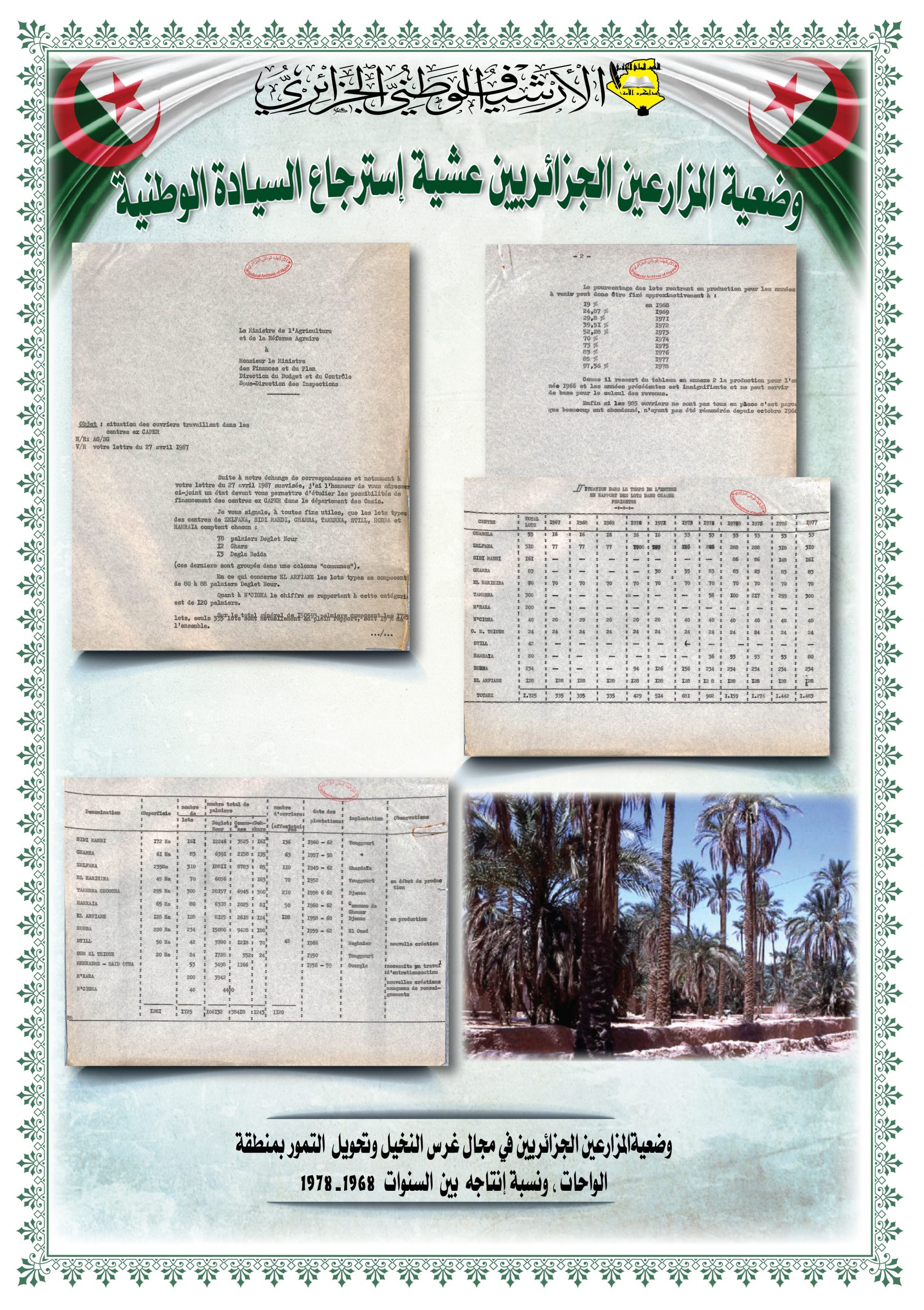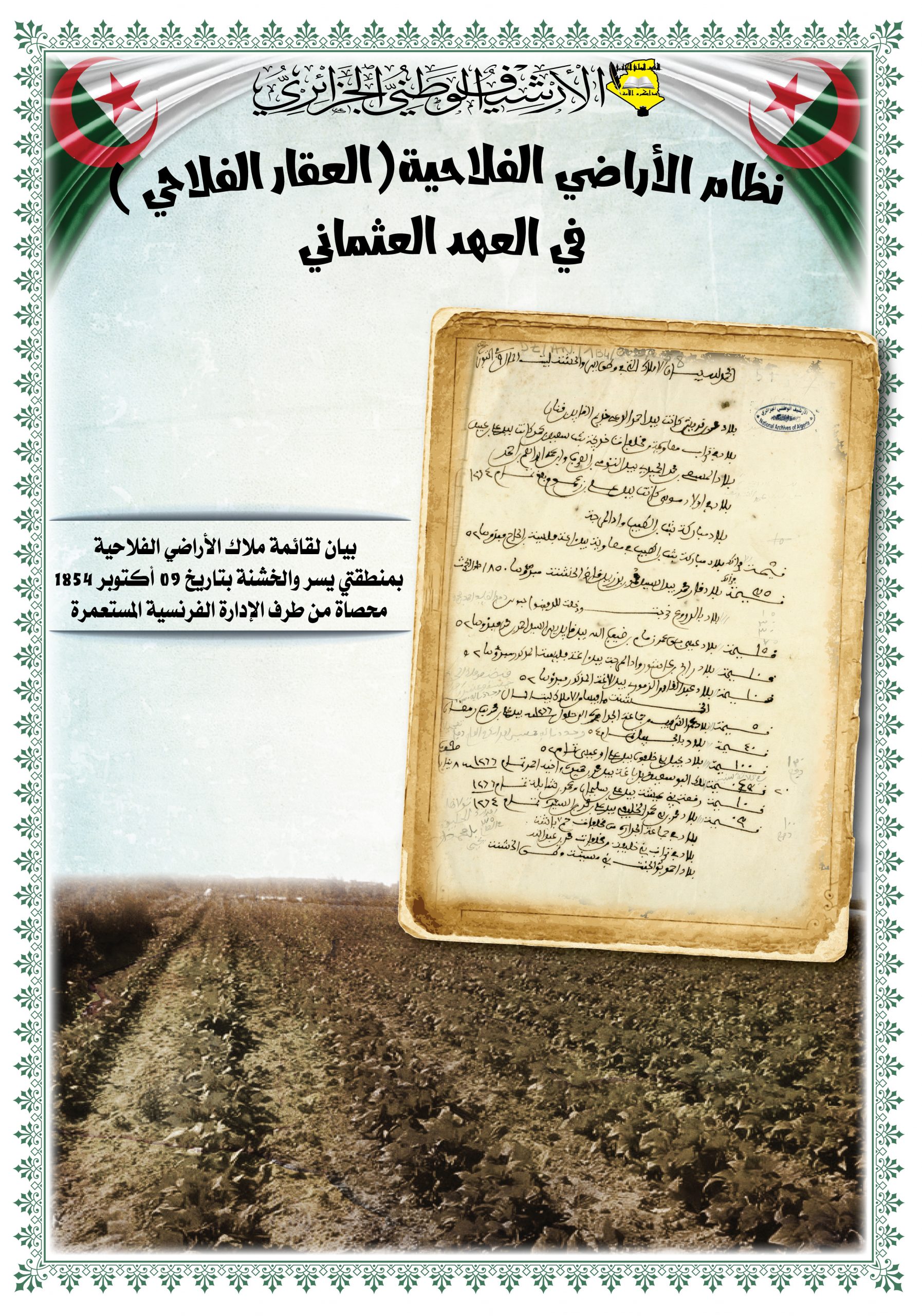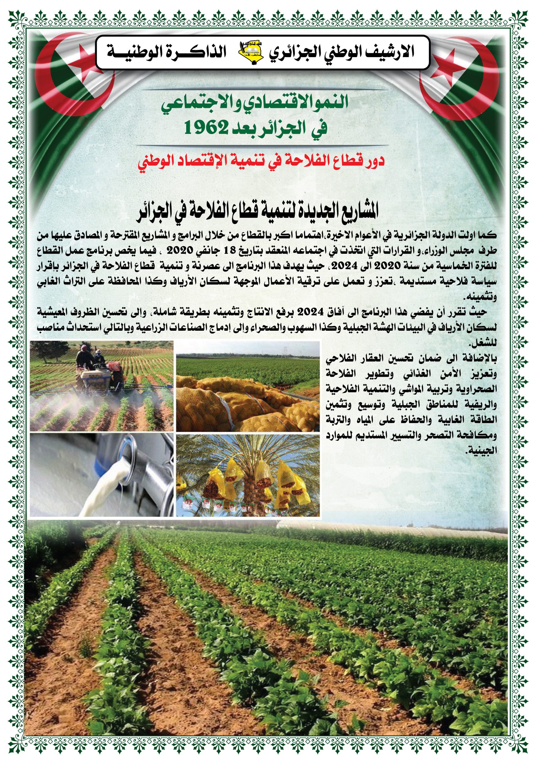 تزامنا مع الاحتفال بالذكرى الستين لاسترجاع السيادة الوطنية نظم الأرشيف الوطني معرضا خاصا بالفلاحة تحت عنوان: “الفلاحة بالجزائر بين الماضي والحاضر … استغلال واستنزاف … جهود وتطور“