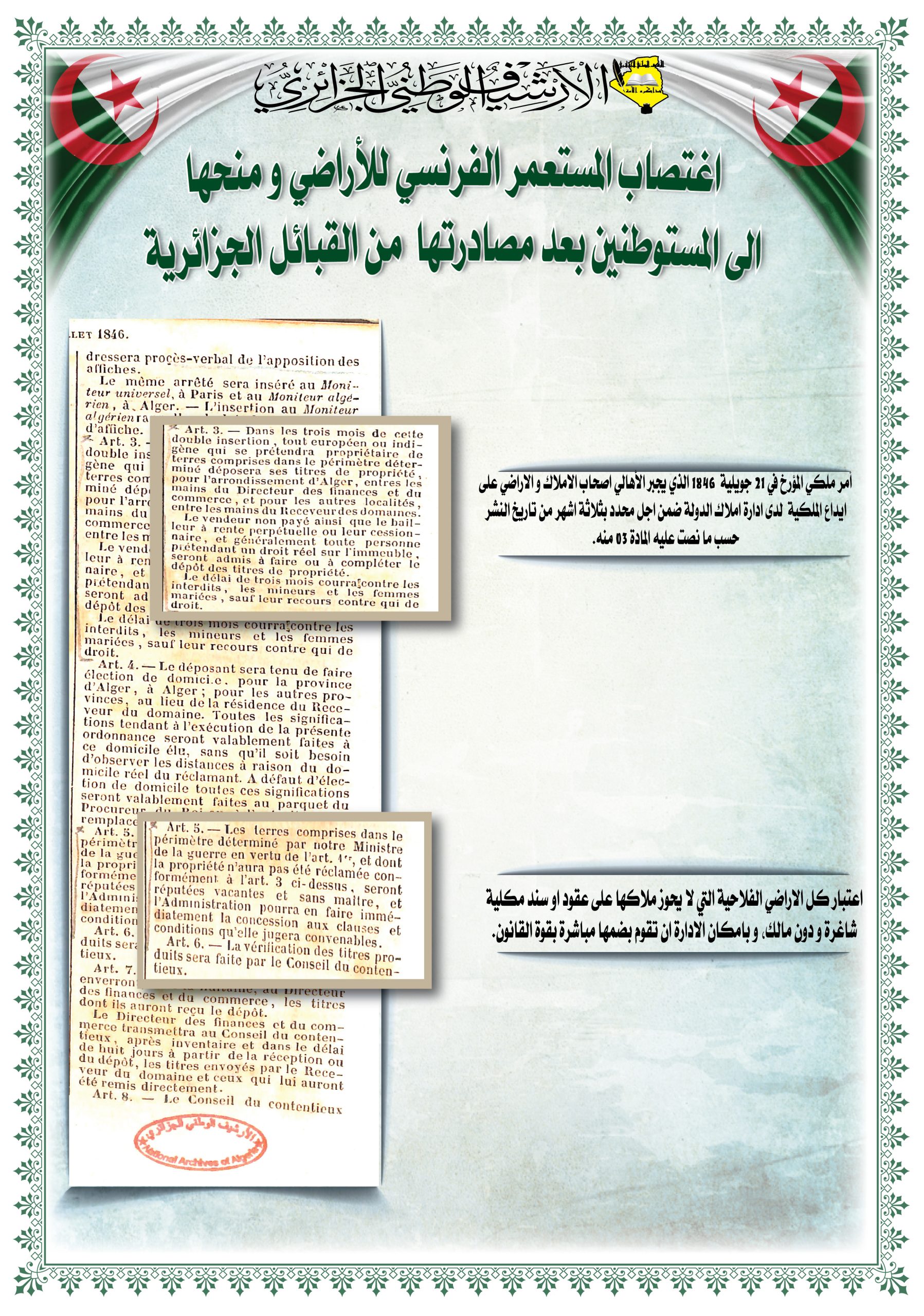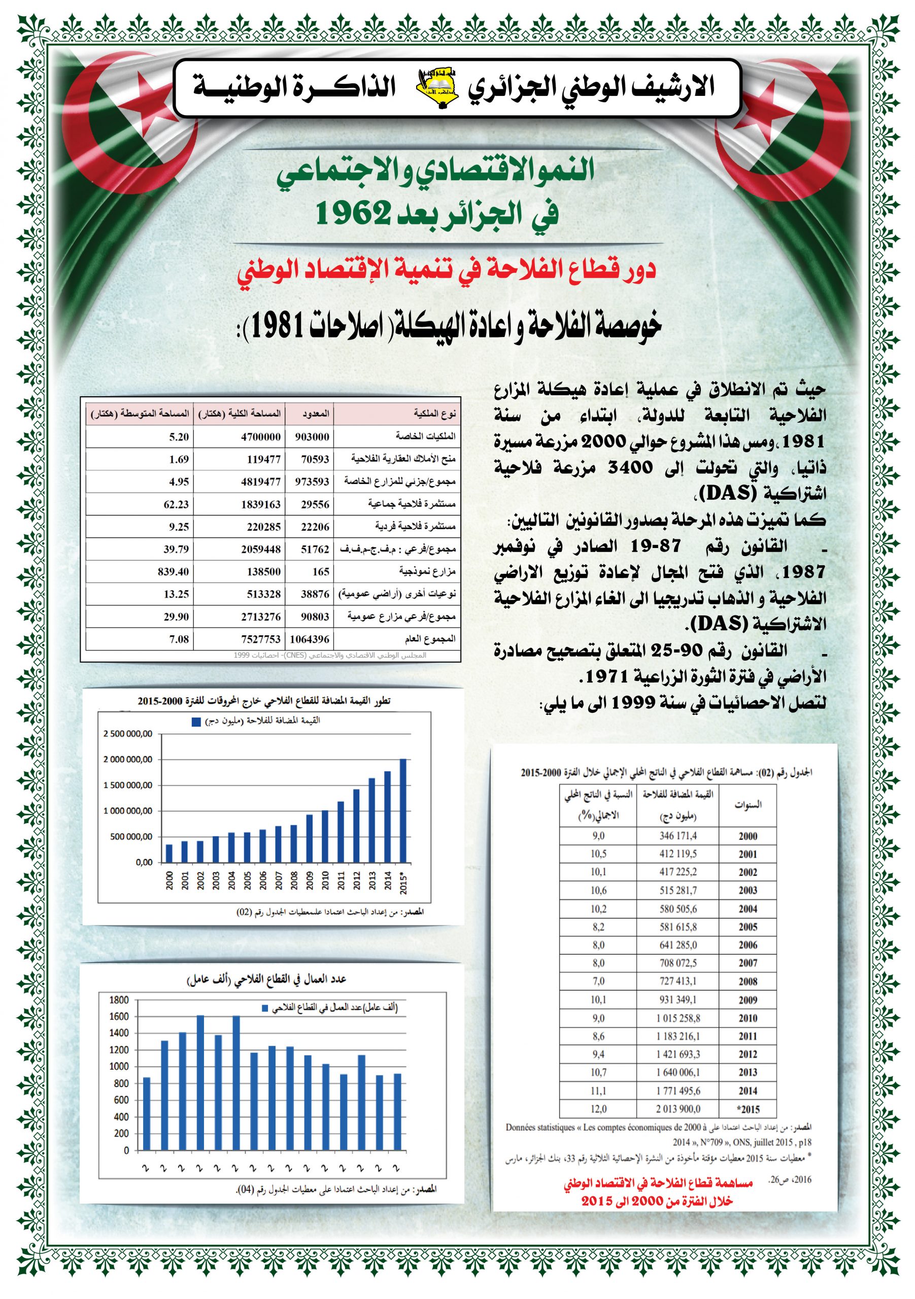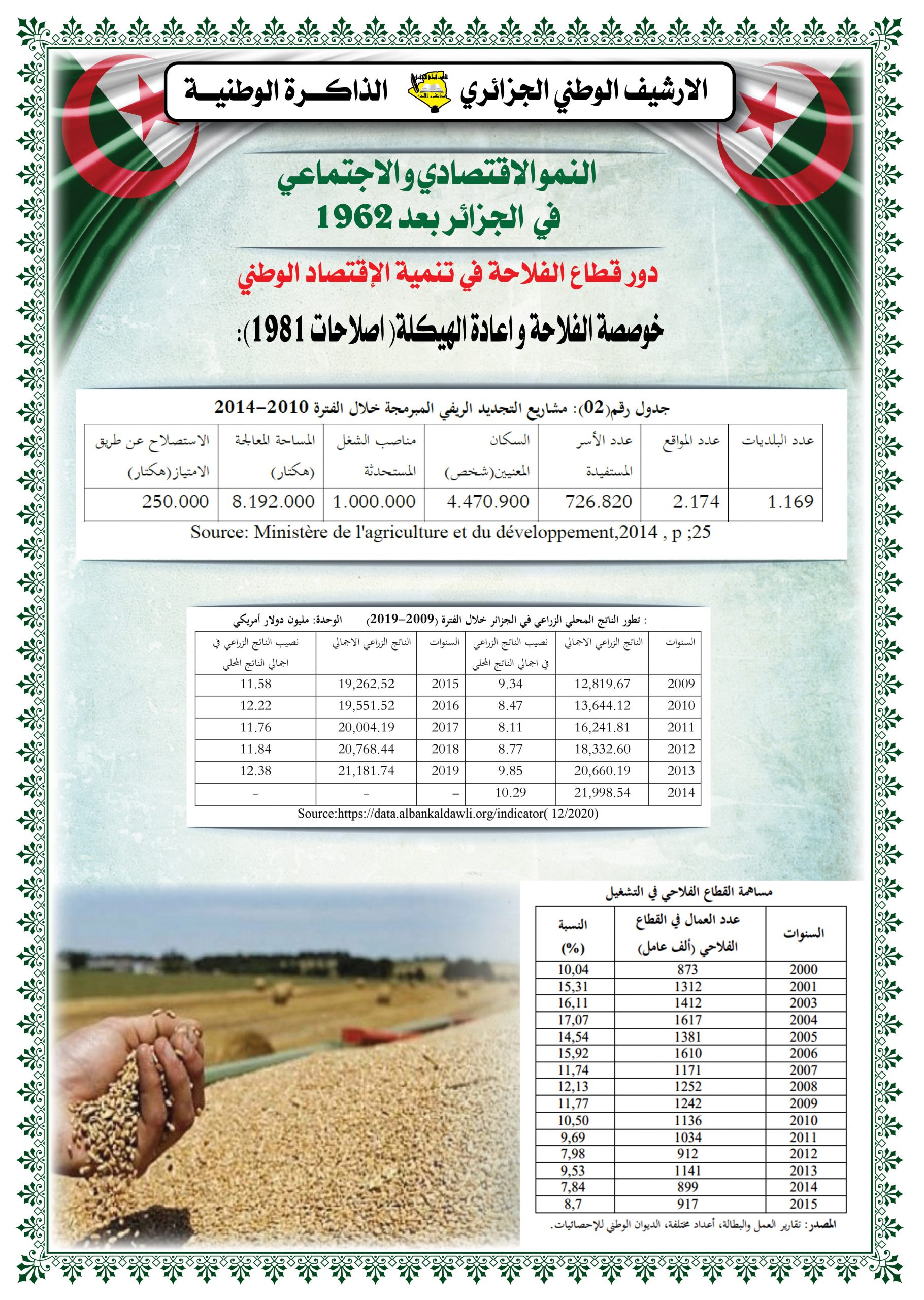 تزامنا مع الاحتفال بالذكرى الستين لاسترجاع السيادة الوطنية نظم الأرشيف الوطني معرضا خاصا بالفلاحة تحت عنوان: “الفلاحة بالجزائر بين الماضي والحاضر … استغلال واستنزاف … جهود وتطور“