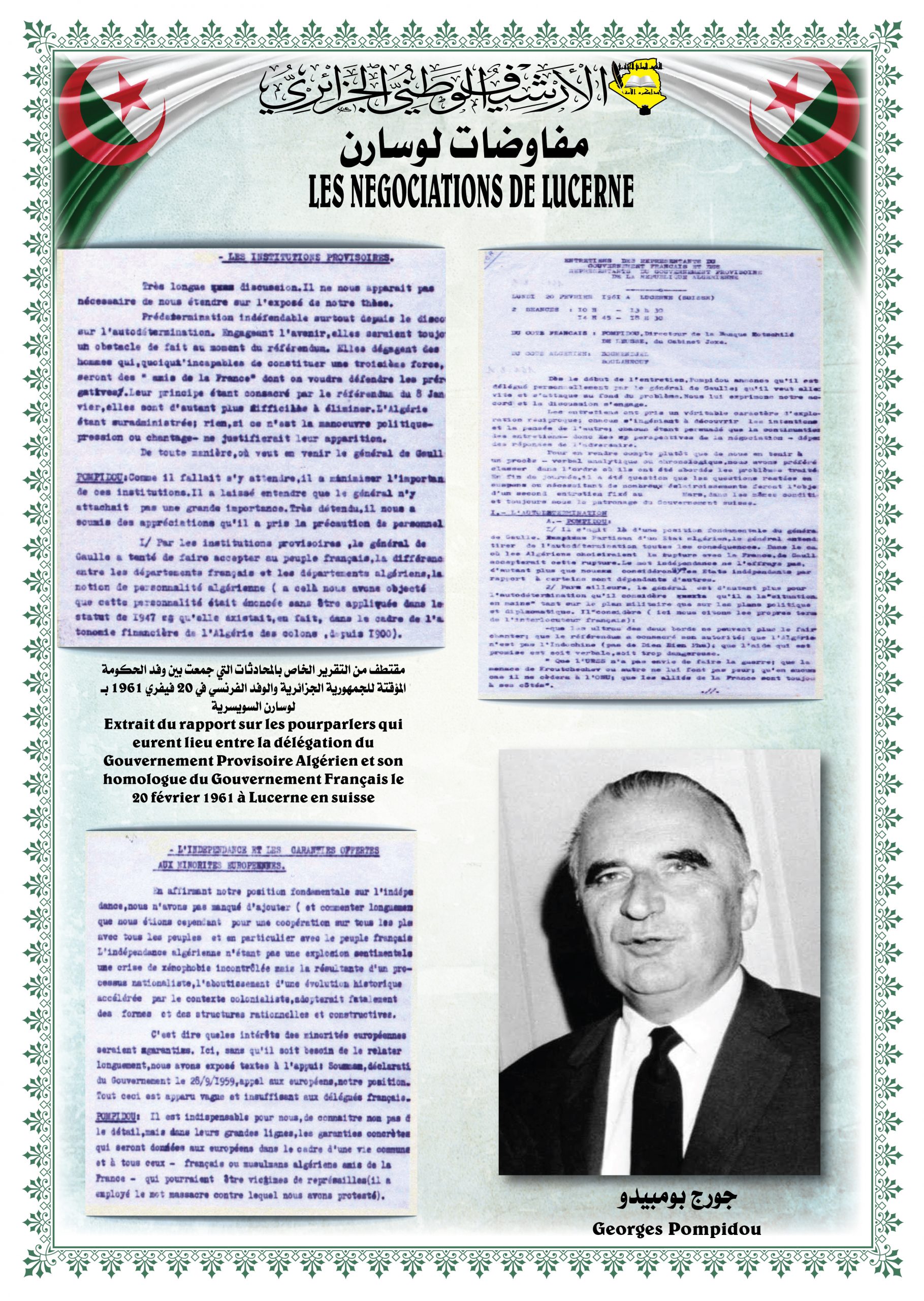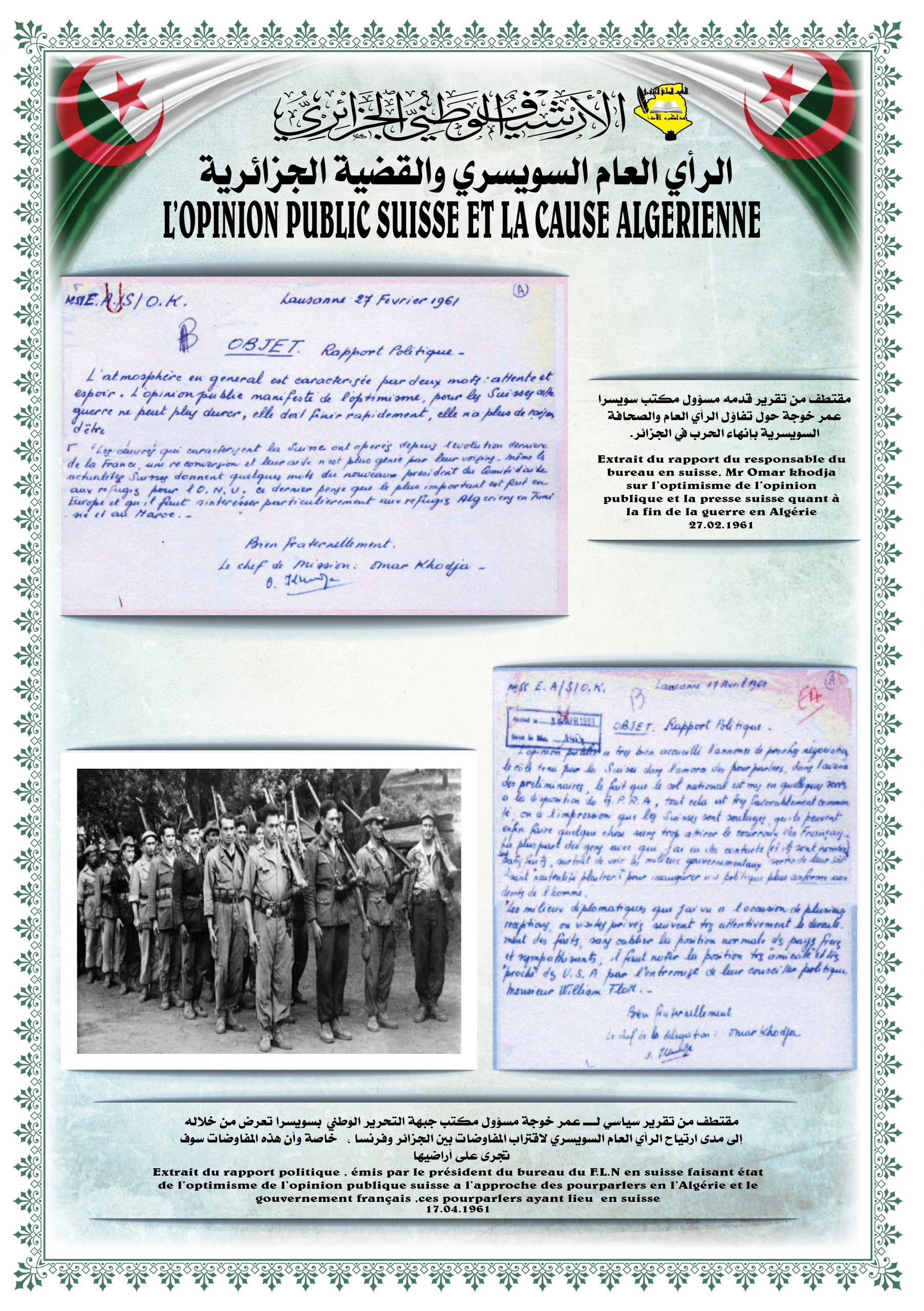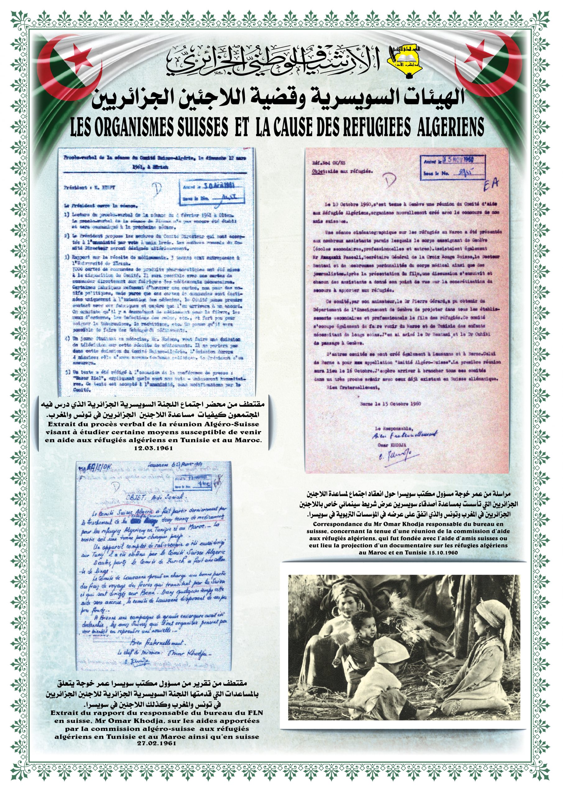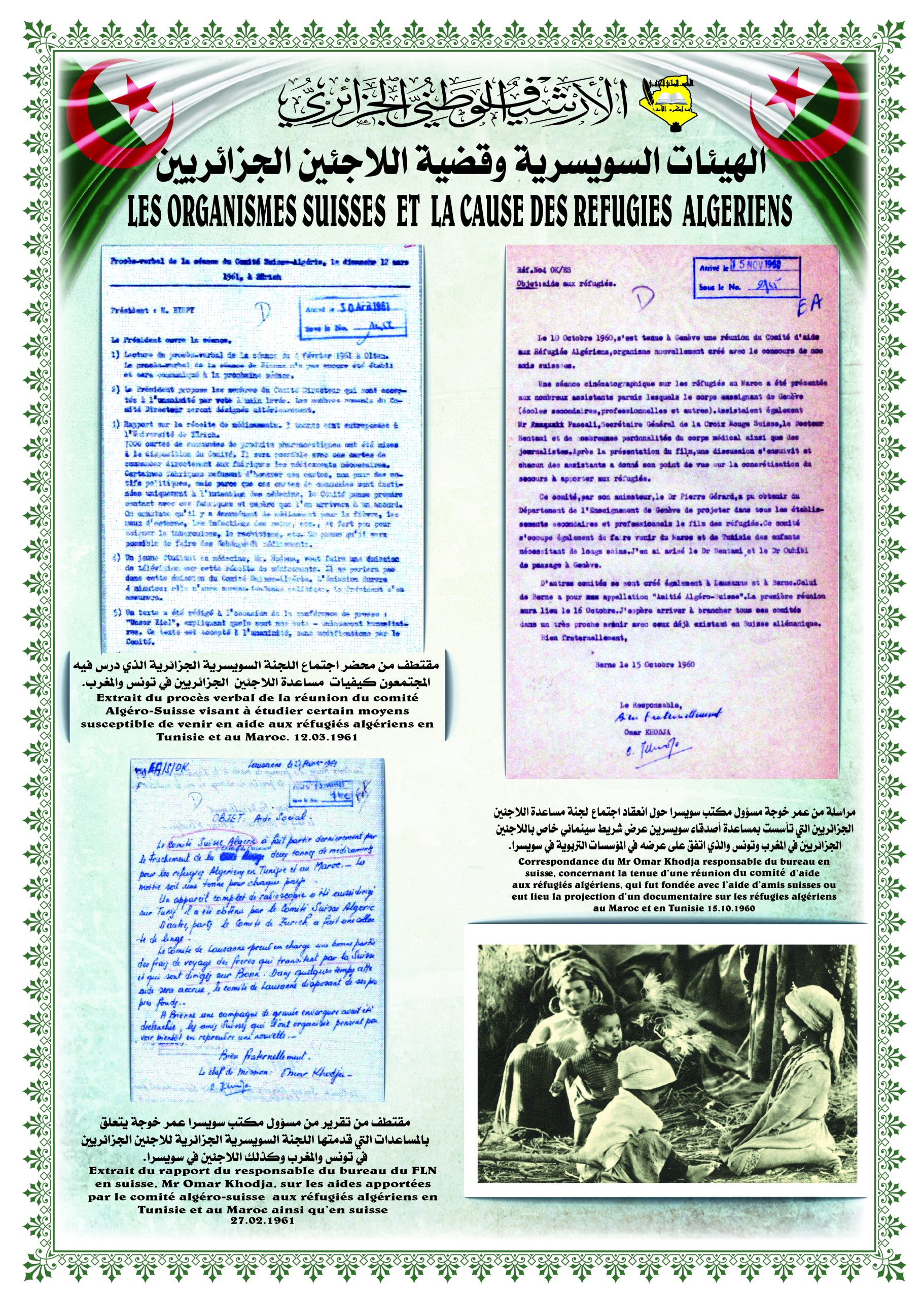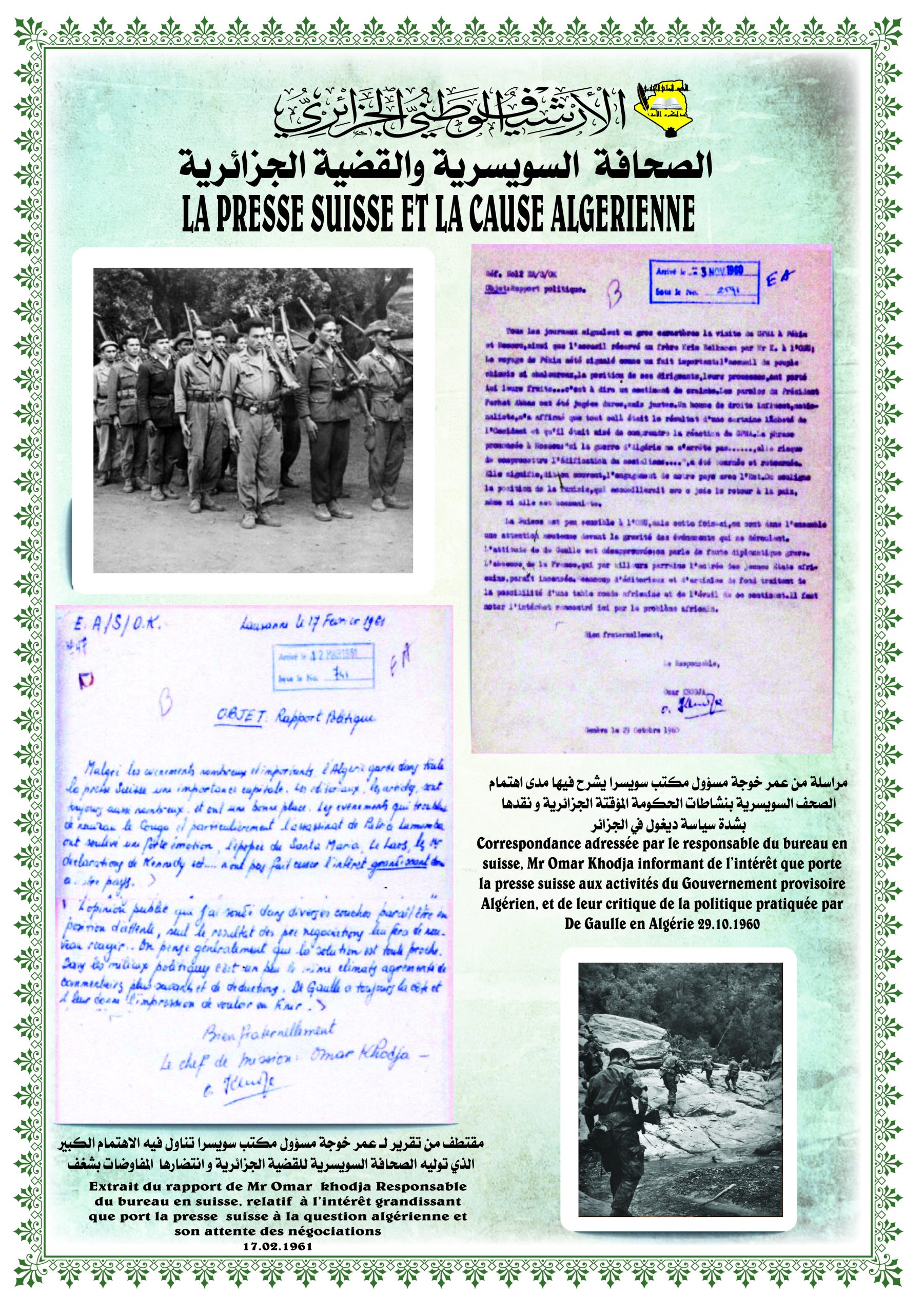 تخلل الزيارة تنظيم معرض للصور و الوثائق الأرشيفية تحت عنوان: ” مساندة سويسرا للقضية الجزائرية “ بالإضافة إلى عرض وثائق أرشيفية وصور وتوثيق خاصة برصيد صديق الثورة الجزائرية السيد ” شــارل هـنري فـافـرو “.