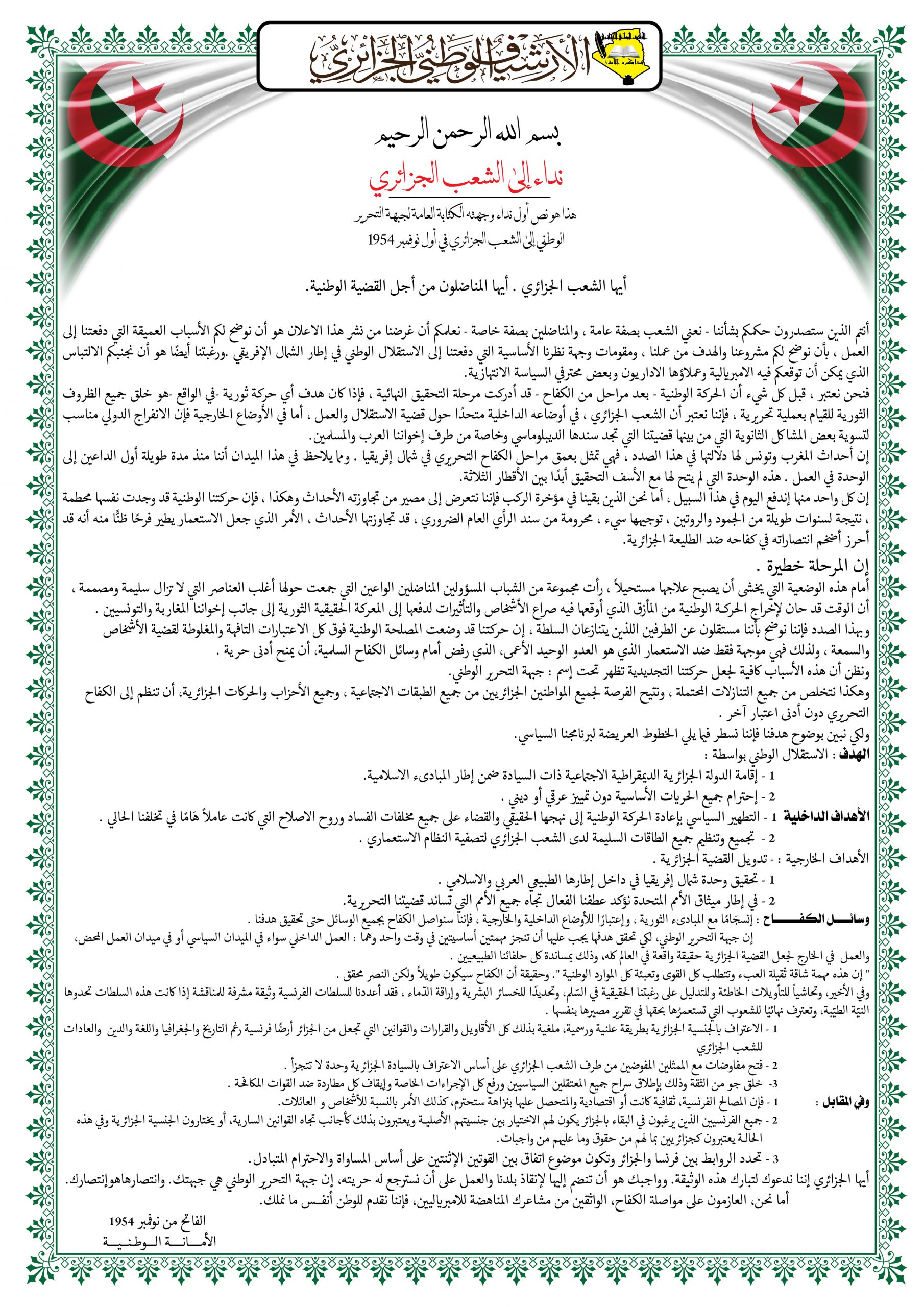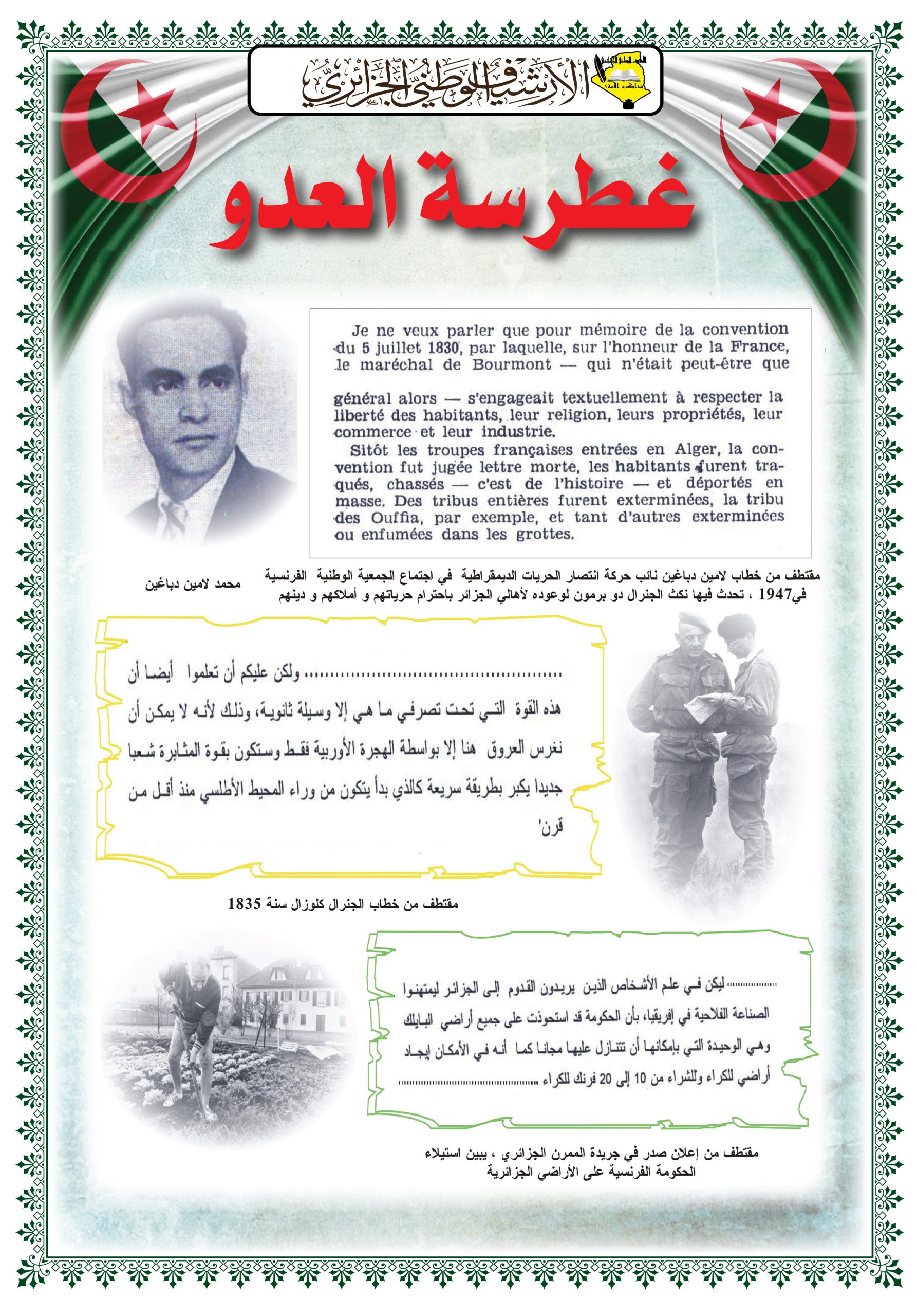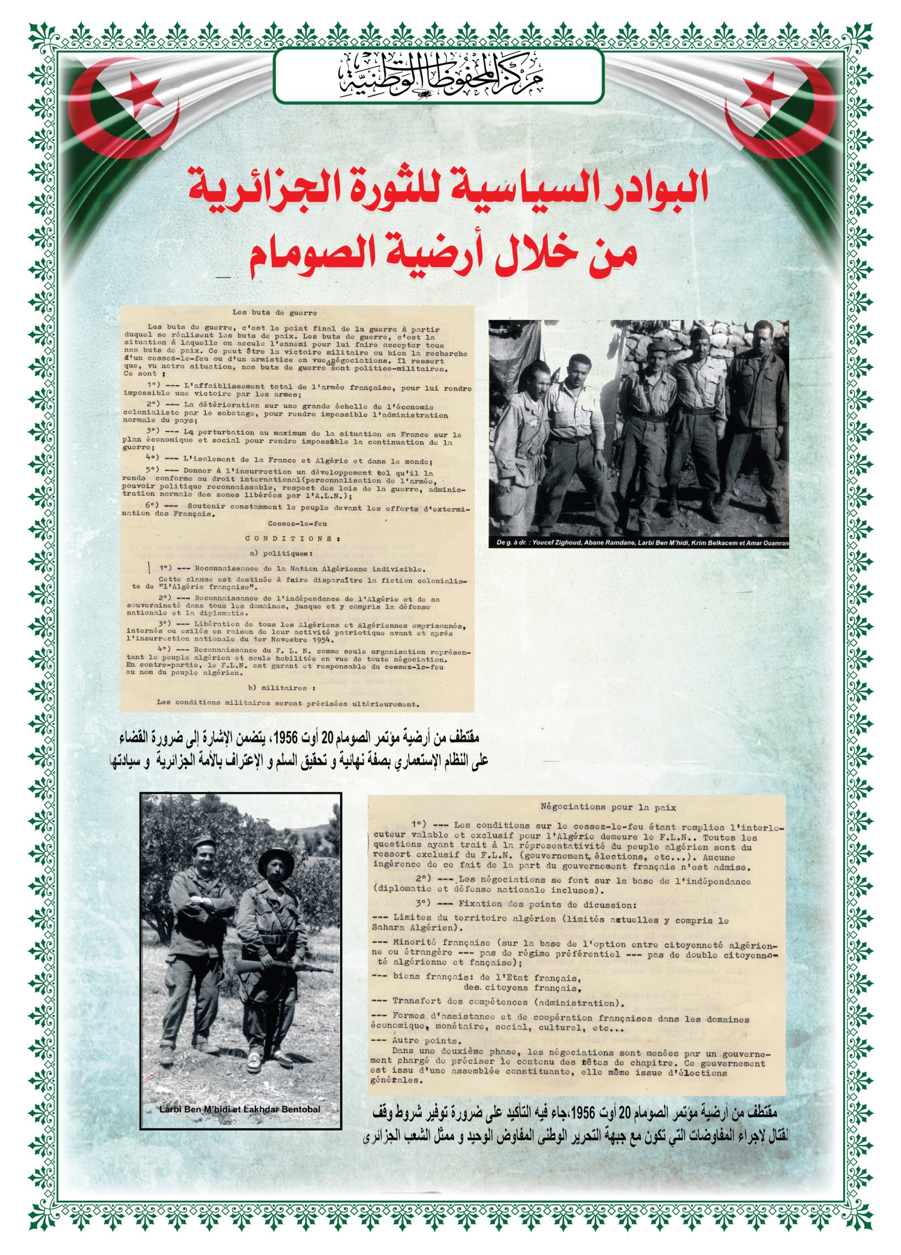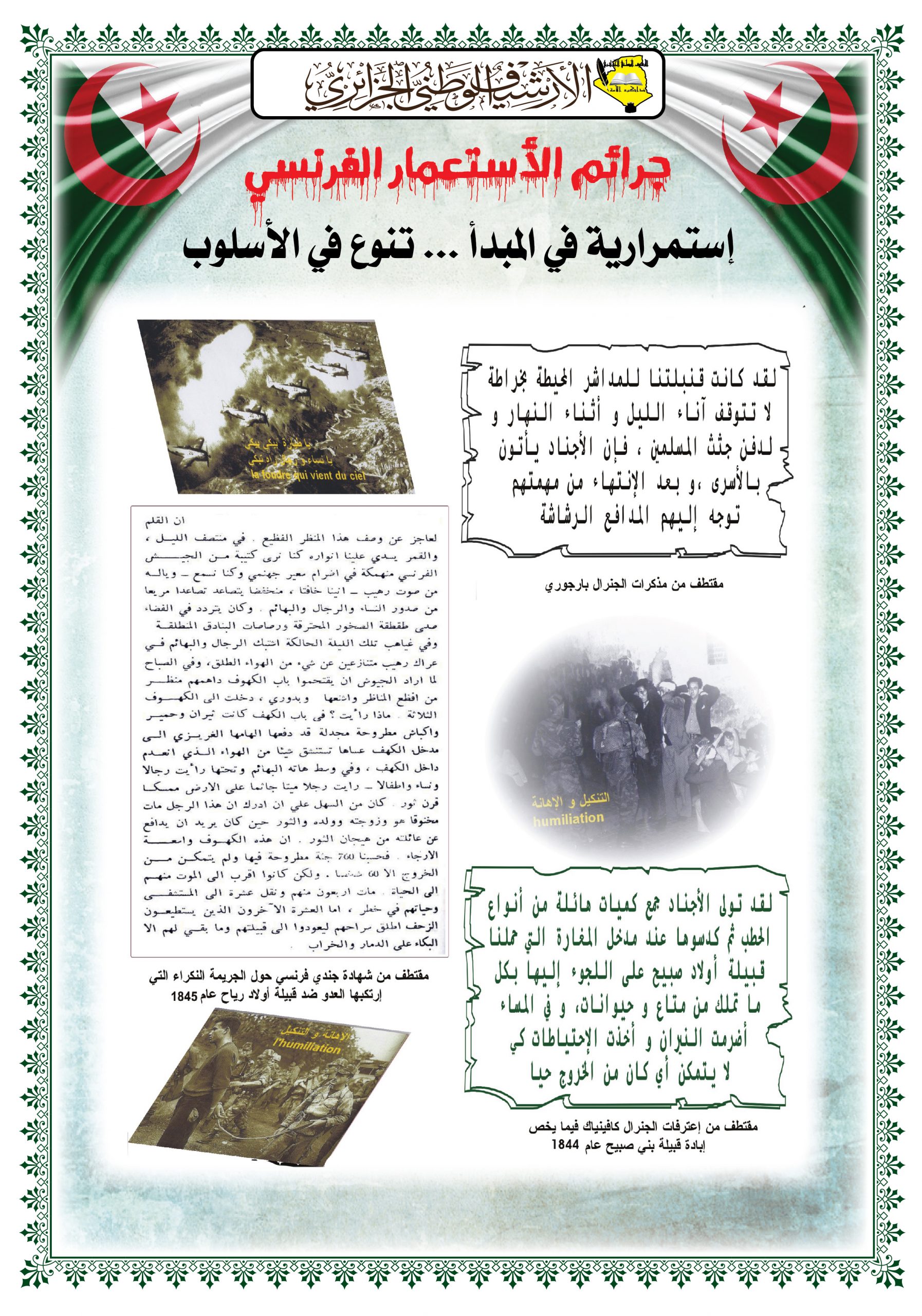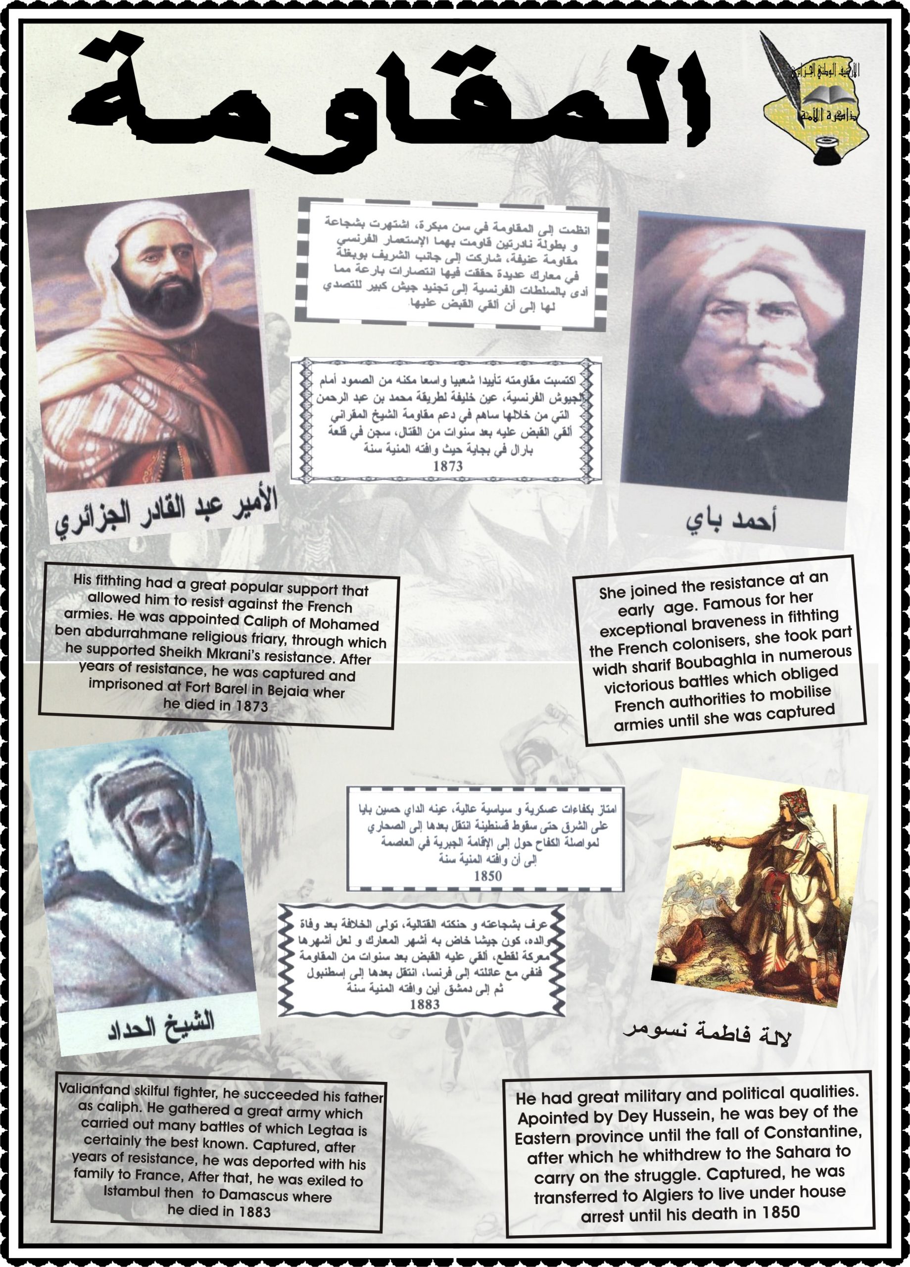 - عرض شريط فيديو تضمن مختصرا عن المقاومة الشعبية الجزائرية إلى غاية إسترجاع السيادة الوطنية تحت عنوان ” ثورتنا ” ( Our Révolution)