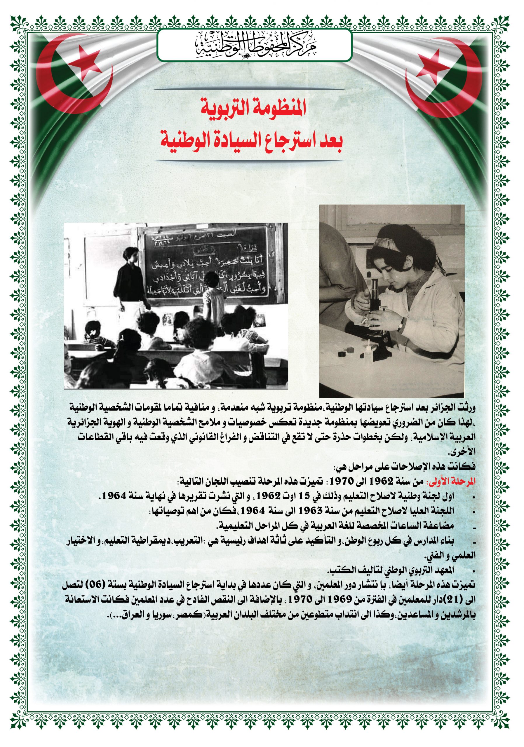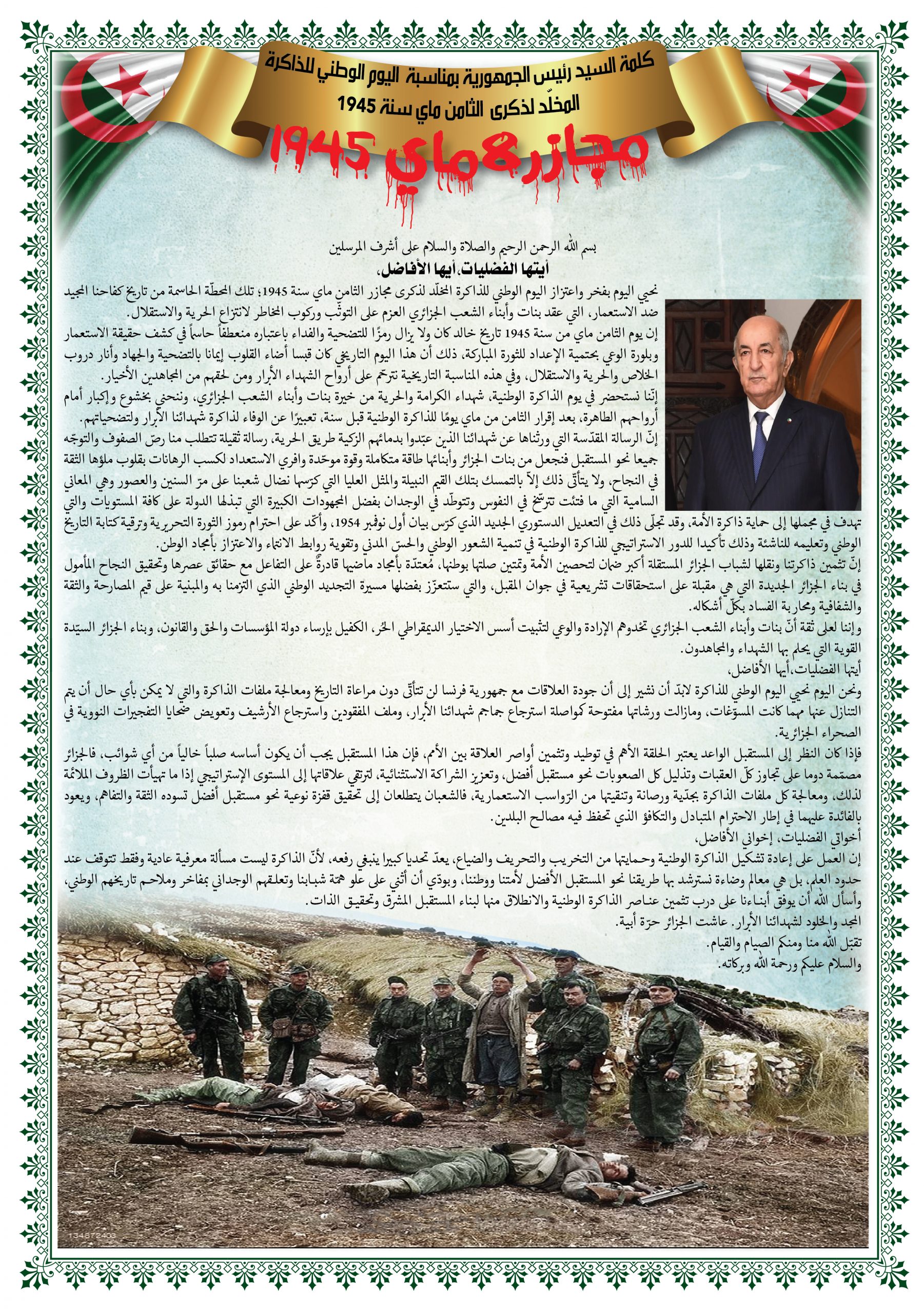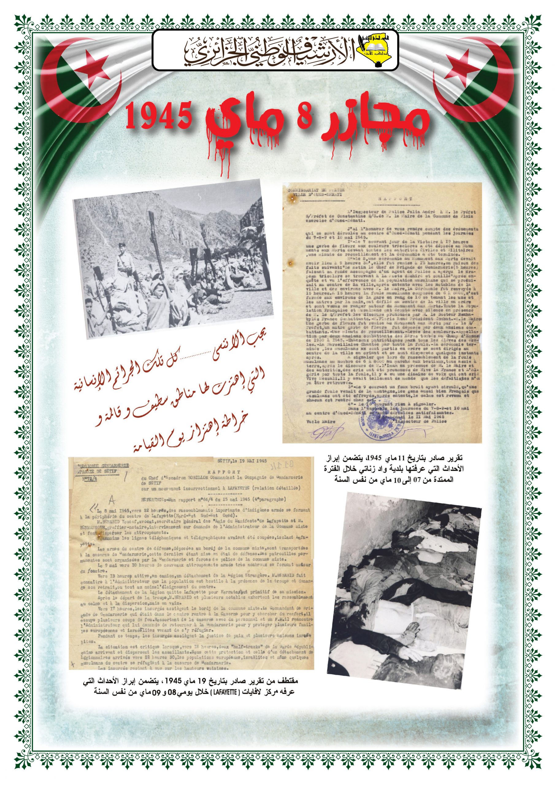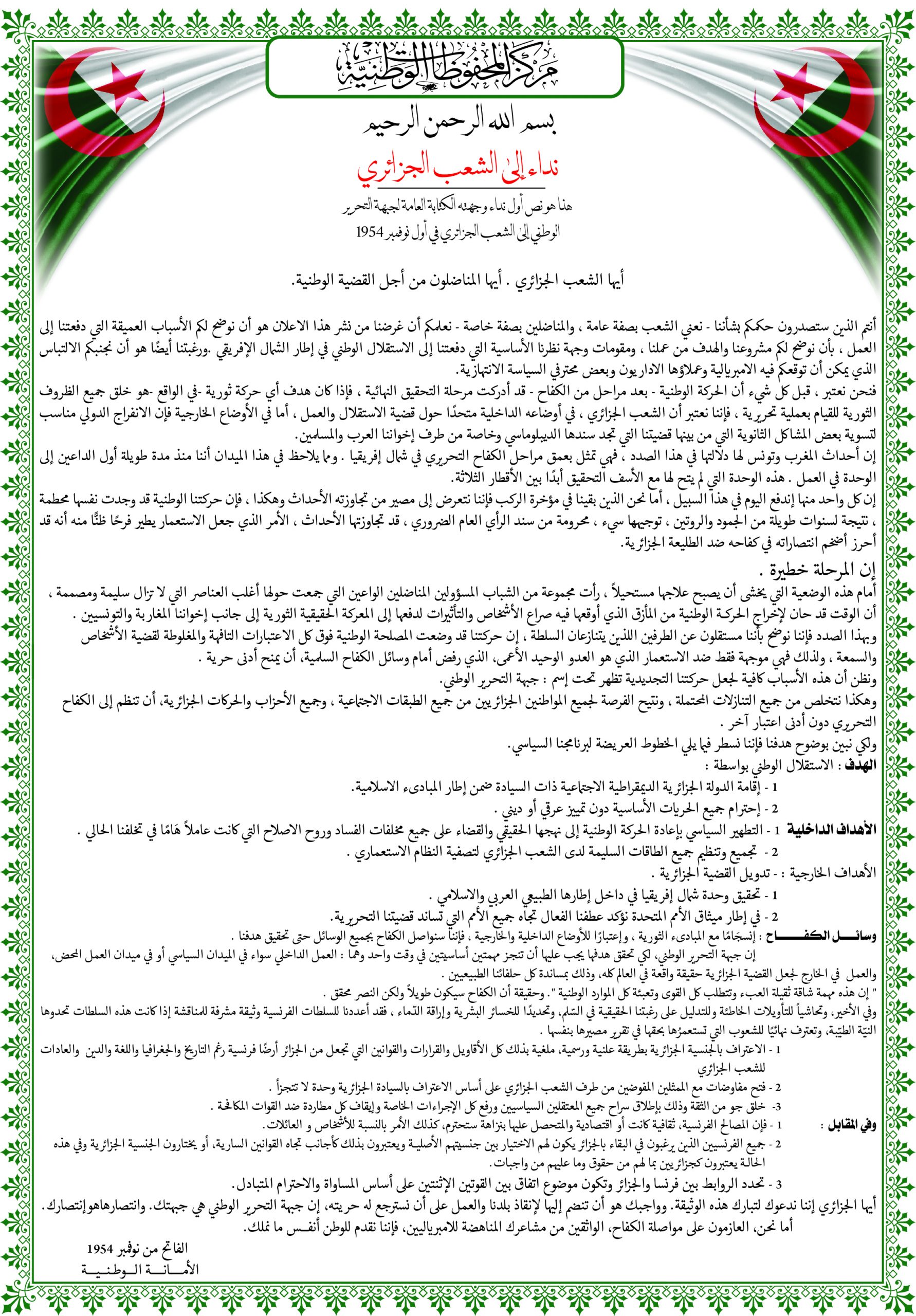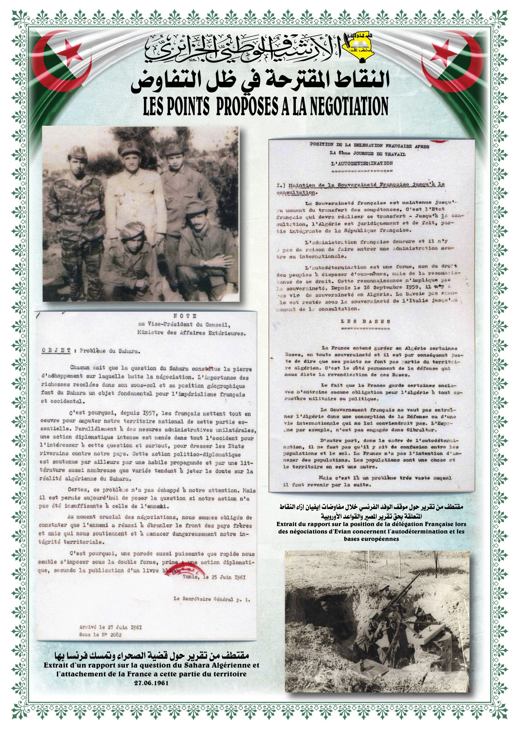 - عرض شريط فيديو تضمن مختصرا عن المقاومة الشعبية الجزائرية إلى غاية إسترجاع السيادة الوطنية تحت عنوان ” ثورتنا ” ( Our Révolution)