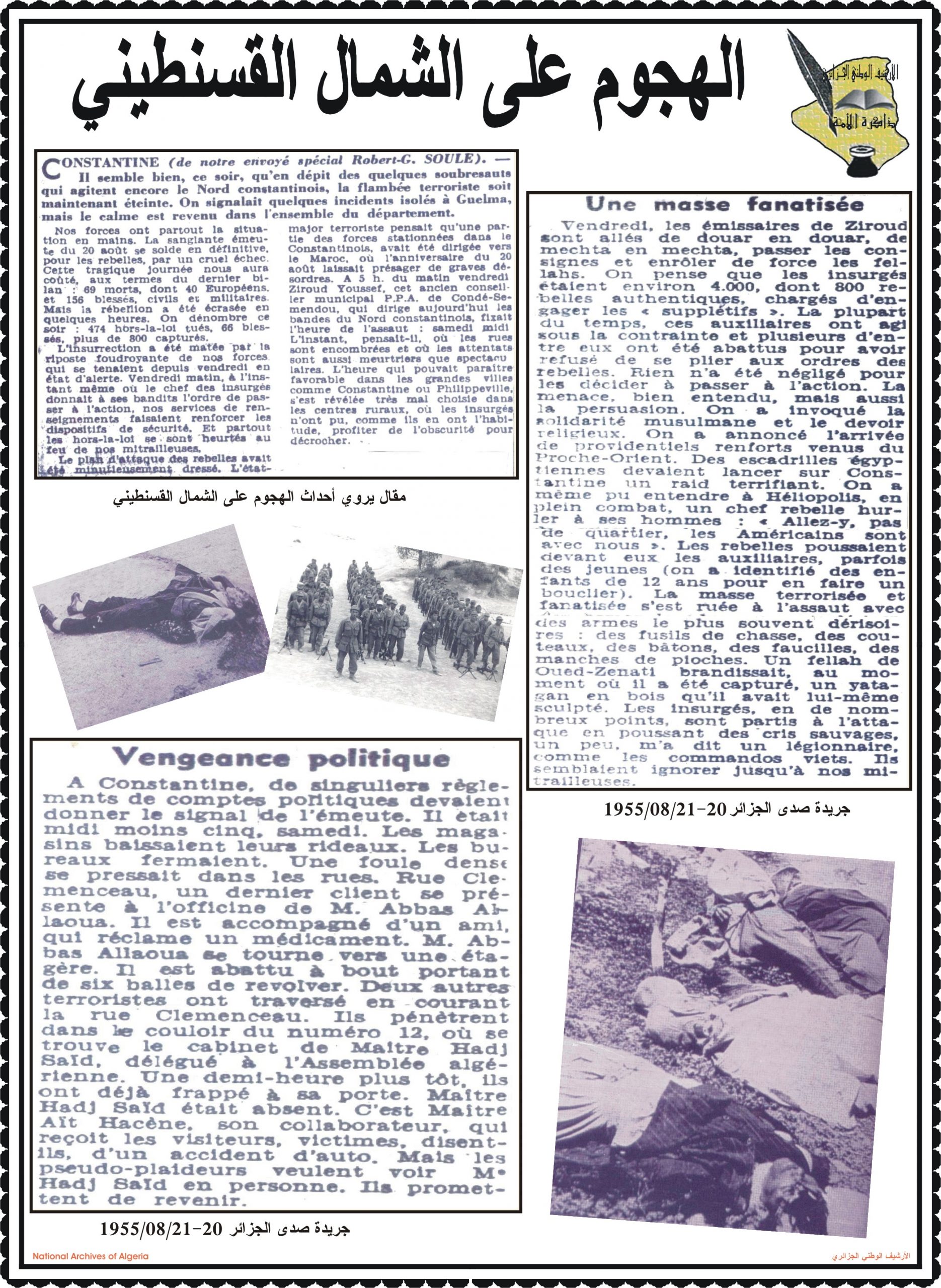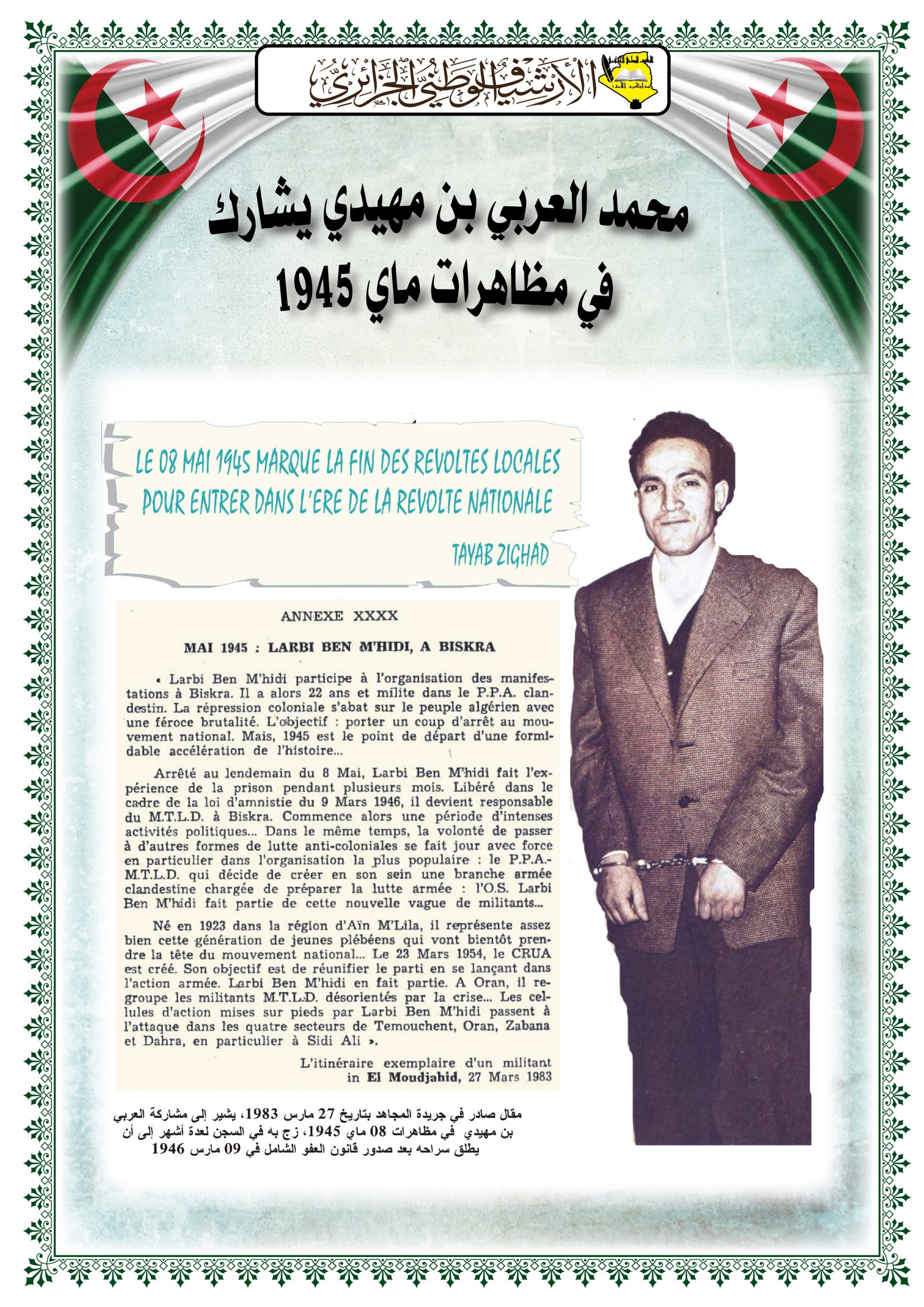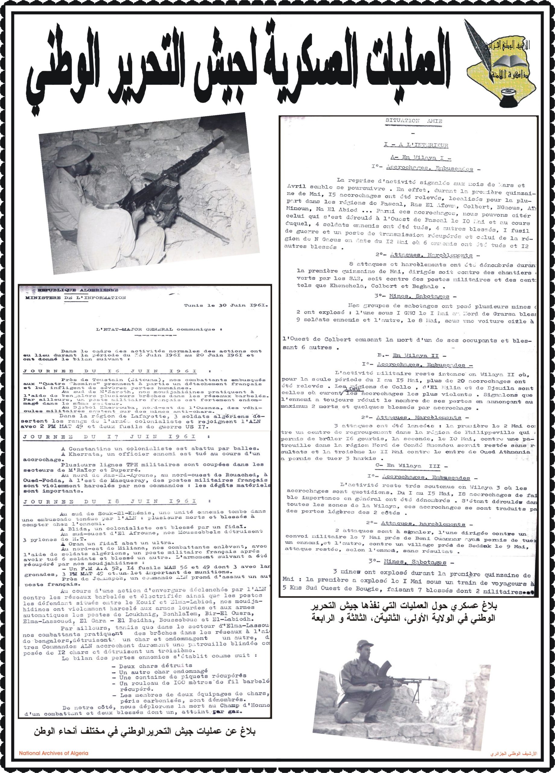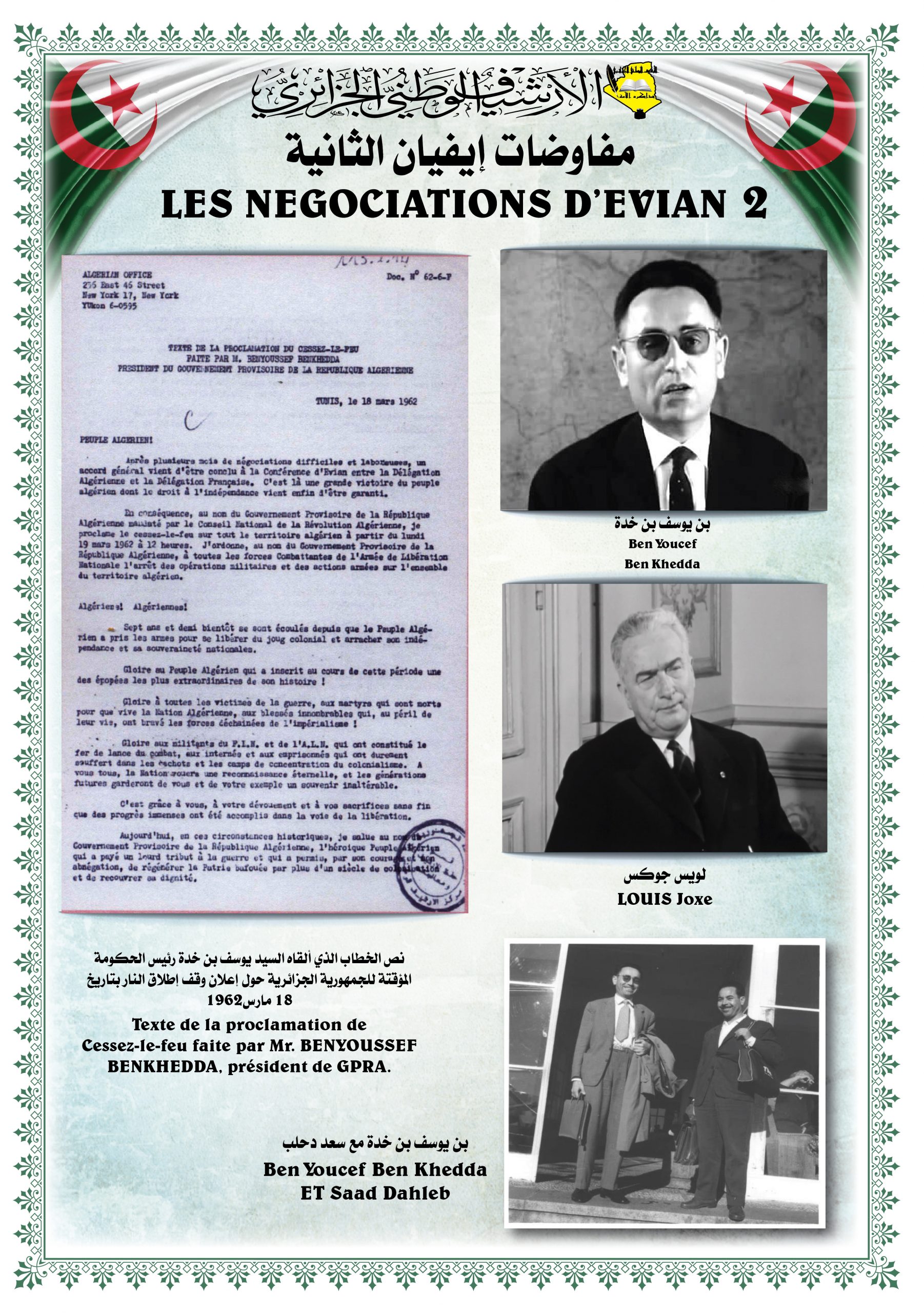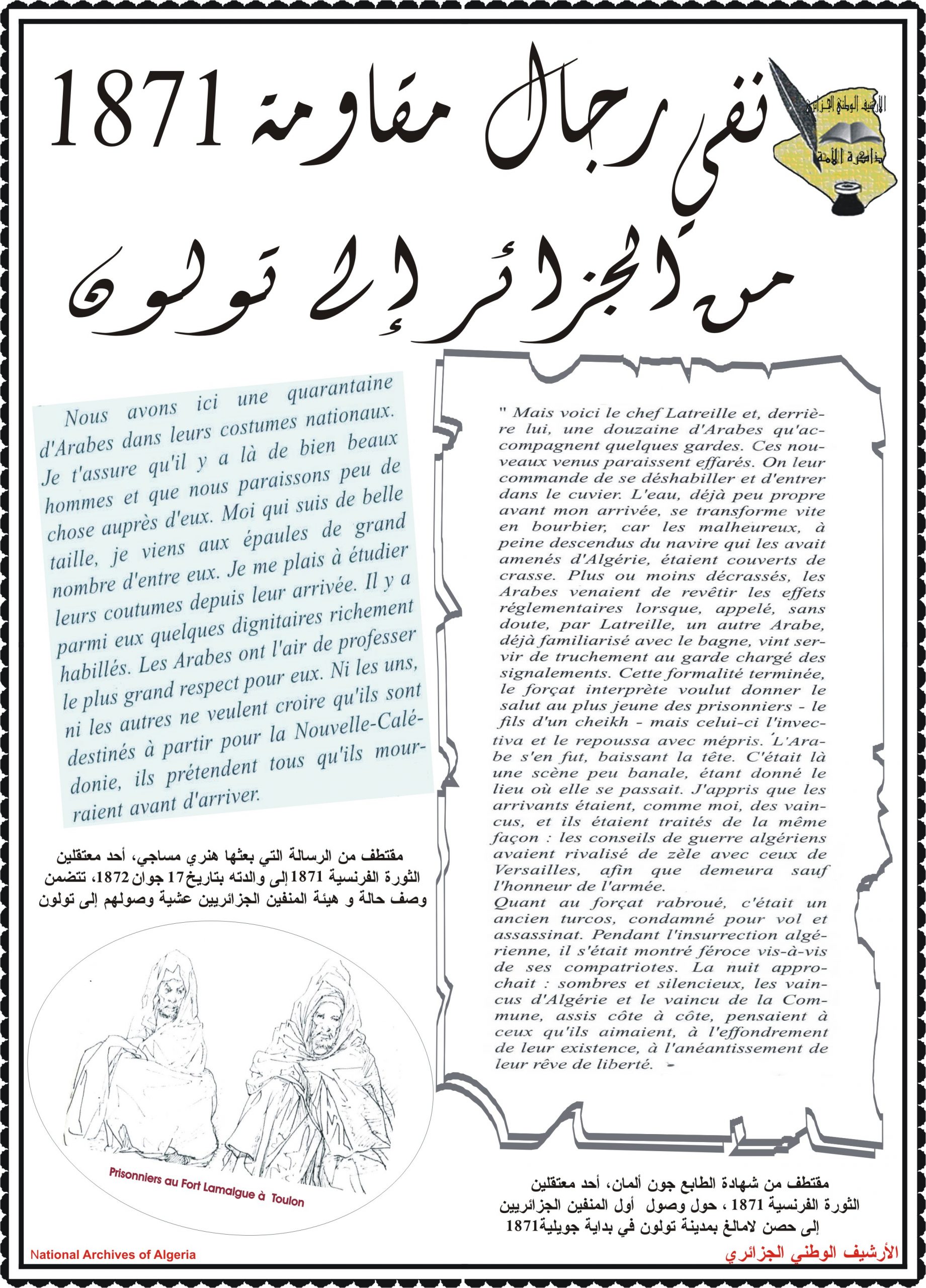 - عرض شريط فيديو تضمن مختصرا عن المقاومة الشعبية الجزائرية إلى غاية إسترجاع السيادة الوطنية تحت عنوان ” ثورتنا ” ( Our Révolution)