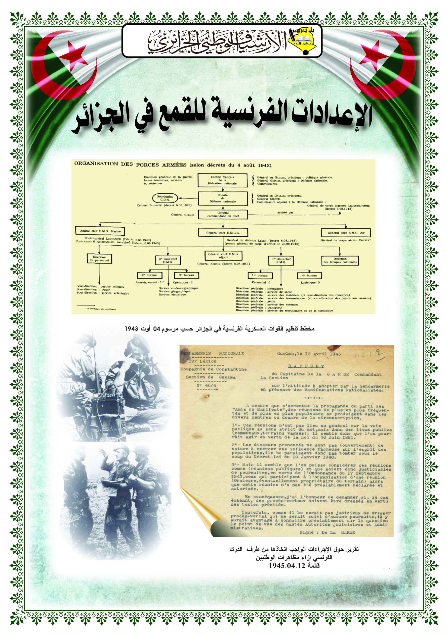 نظمت المديرية العامة للأرشيف الوطني بالتنسيق مع مركز المحفوظات الوطنية دورة تكوينية لفائدة إطارات قيادة الدرك الوطني في الفترة الممتدة من 18 إلى غاية 22 فيفري2024 في مجال إدارة وحفظ الأرشيف على مستوى قيادة الدرك الوطني بالشراقة . جاءت هذه الدورة في إطار تعزيز سبل التعاون بين المؤسستين من اجل اكتساب الخبرة للممارسة الفعلية لتسيير وحفظ الأرشيف التاريخي.