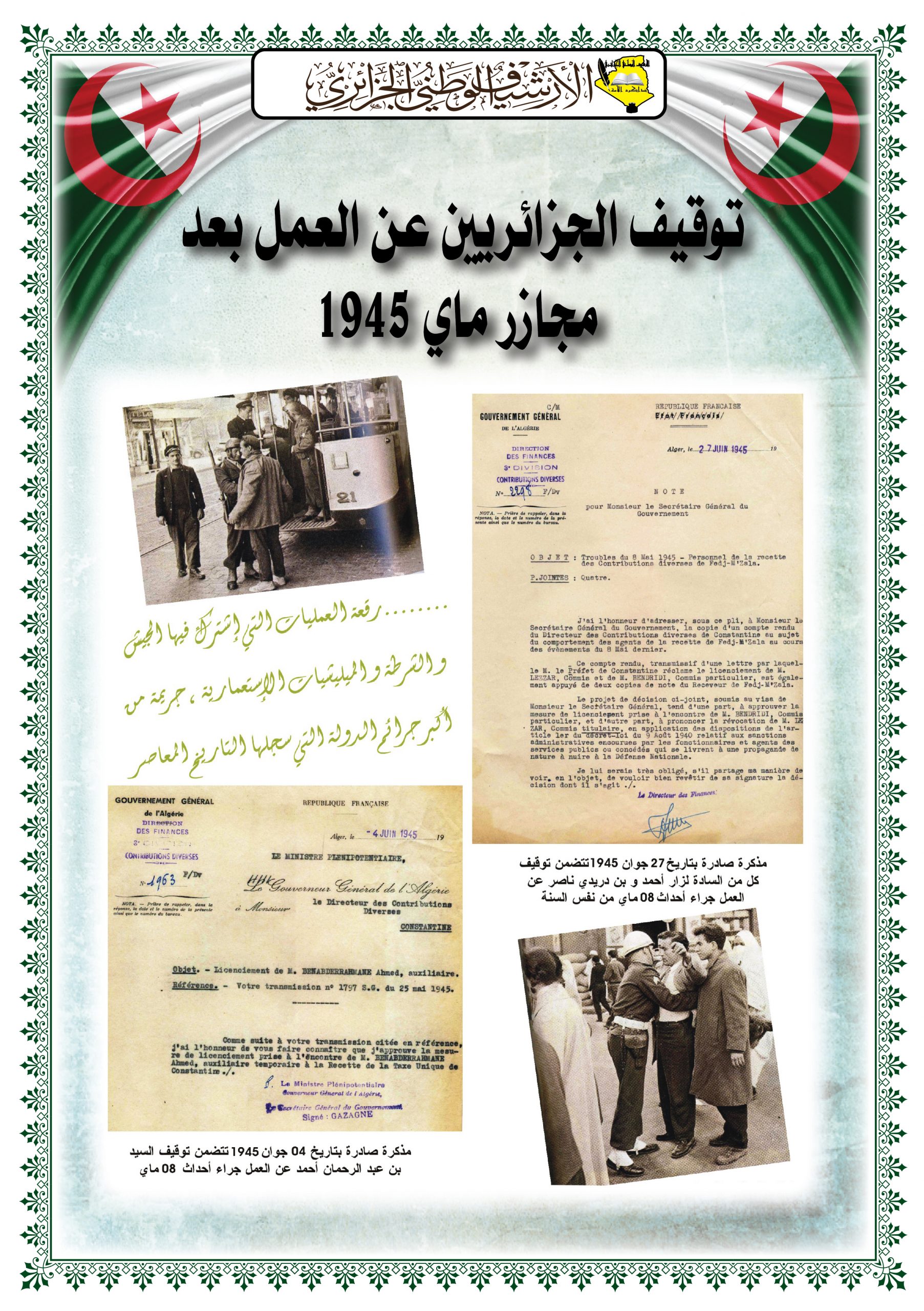 تتفعيلا لاتفاقية التعاون في مجال الأرشيف والبحث العلمي المبرمة في 7ماي 2023 بين كل وزارة التعليم العالي والبحث العلمي والمديرية العامة للأرشيف الوطني، نضم تربصا وطنيا تكوينيا في مجال حفظ وتسيير الأرشيف لفائدة مسؤولي مصالح تسيير الأرشيف بالمؤسسات الجامعية في الفترة الممتدة من 22الى26 ديسمبر2024 بالقطب التكنولوجي العلمي عبد الحفيظ احدادن بسيدي عبد الله (الجزائر).