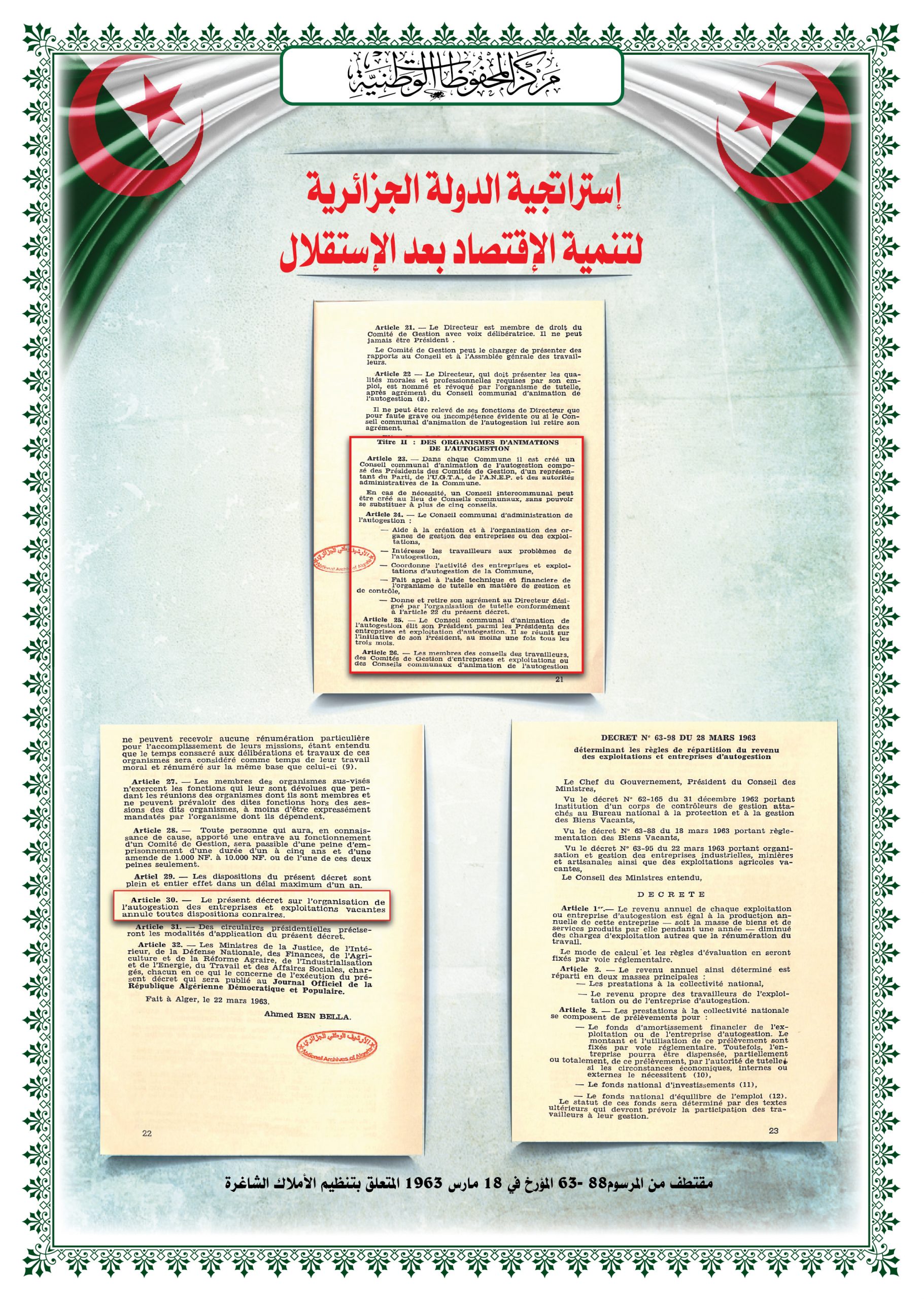 – مديرية الأرشيف برئاسة الجمهورية.