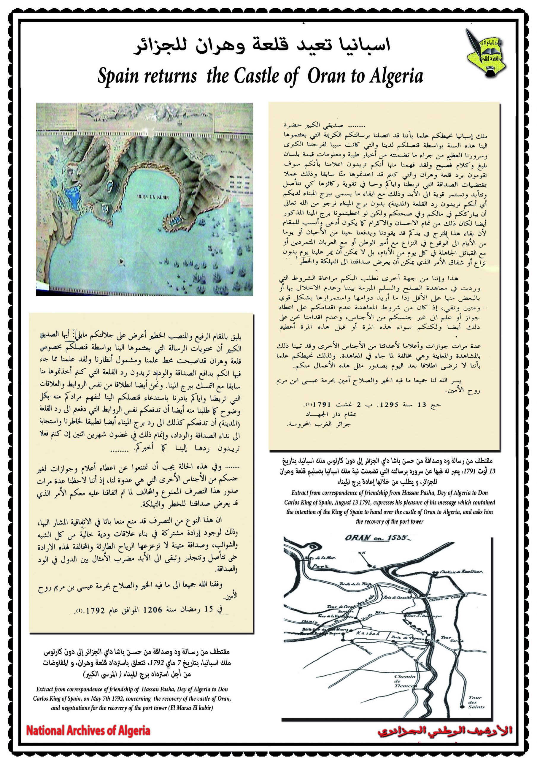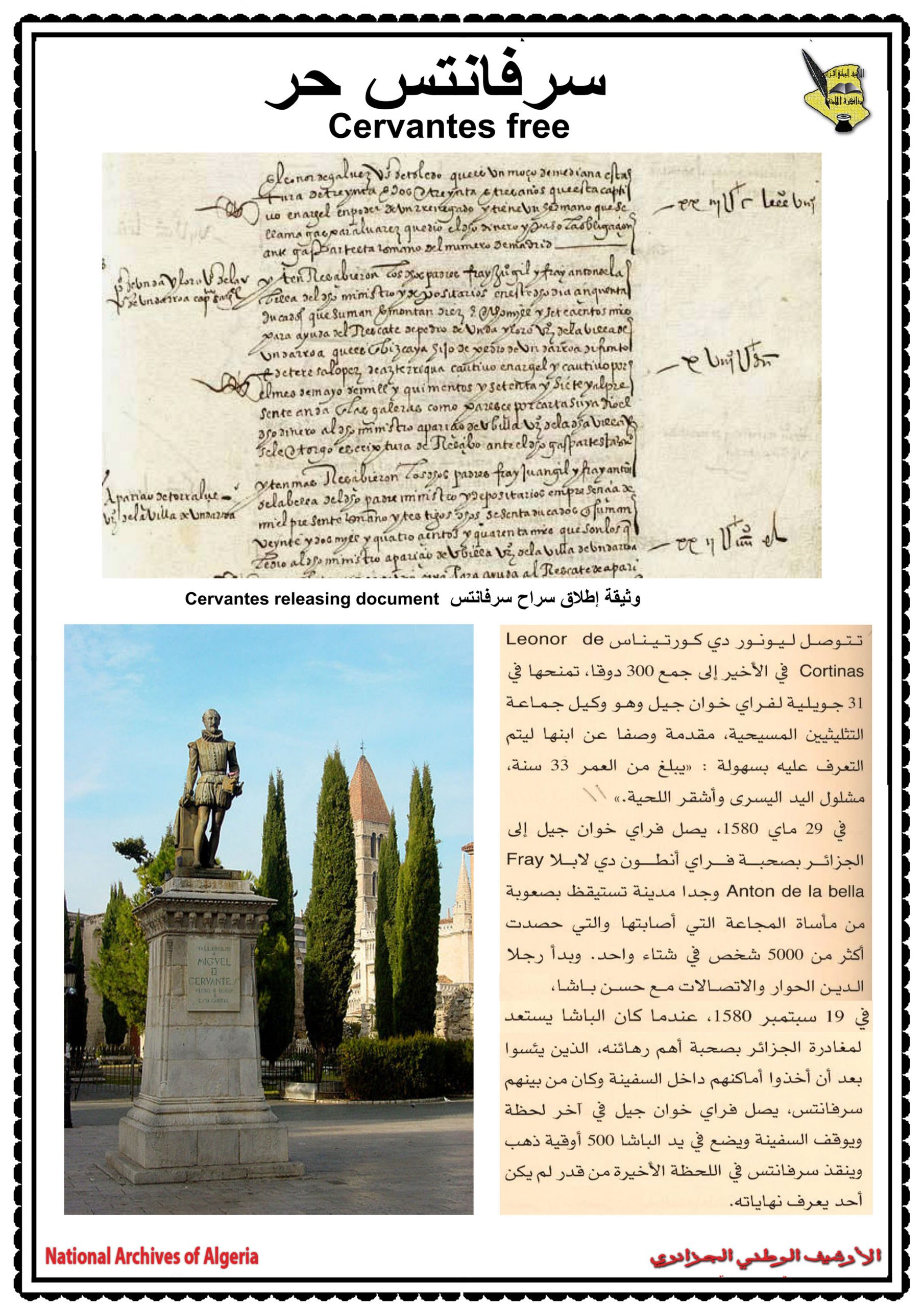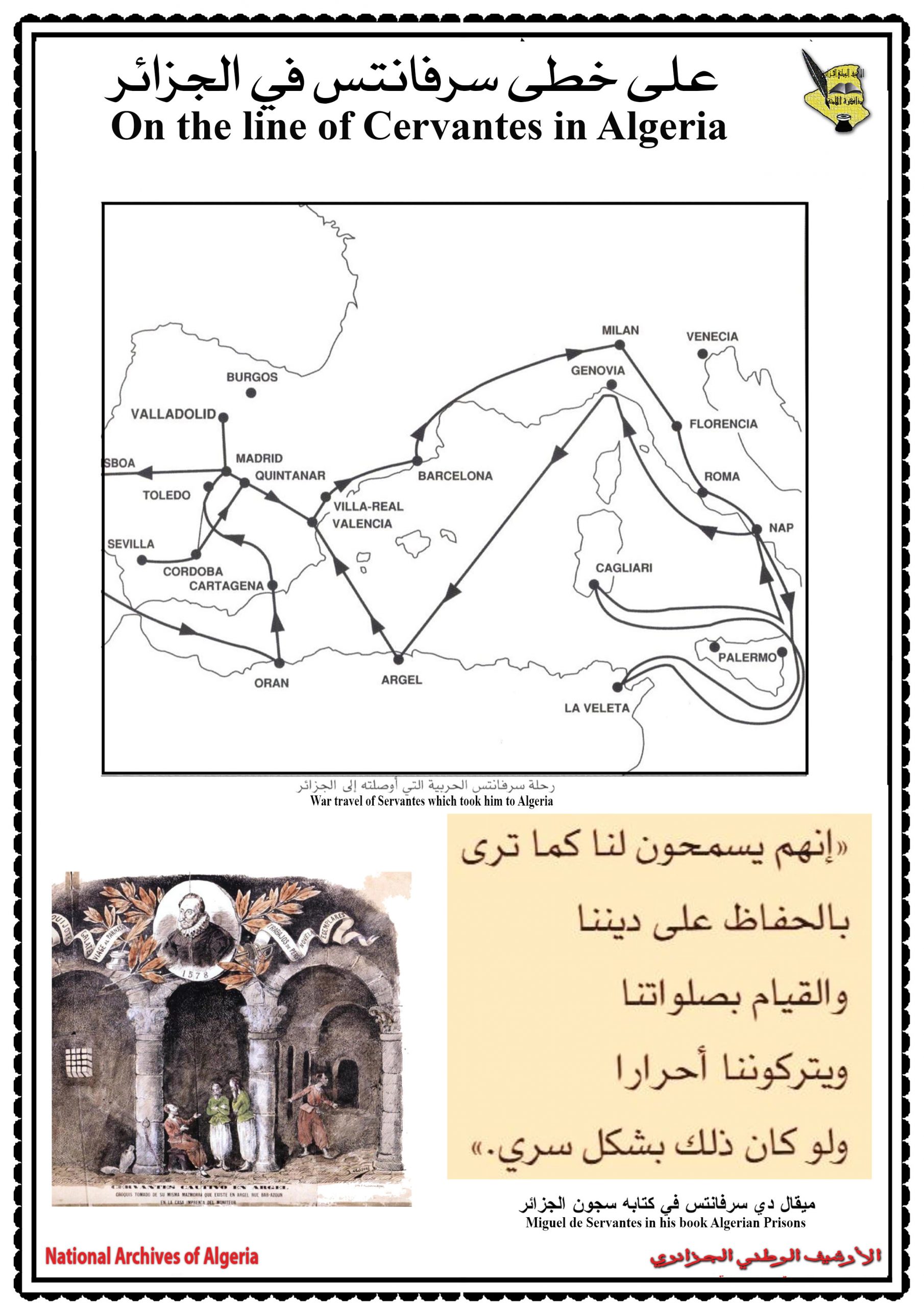 احتضنت عاصمة الزيانيّين تلمسان يومي 17 و 18 جوان 2014 فعّاليات الندوة العلمية التي سلّطت الضوء على العلاقات الجزائرية الاسبانية في فترة الكاتب “ميغل دي سيرفانتس”، بمشاركة ثلّة من المؤرخين الاكادميّين والباحثين كل من اسبانيا والبرتغال وتركيا وتونس والجامعات الوطنية والذي بلغ عددهم ستة عشر محاضرا تمّ تقسيمهم إلى خمس جلسات علمية حيث تطرق المشاركون في هذه الندوة الدولية إلى مواضع متعددة و مختلفة نذكر منها إدراك الشخصية الدرامية في كتاب (EL trato de Algel).