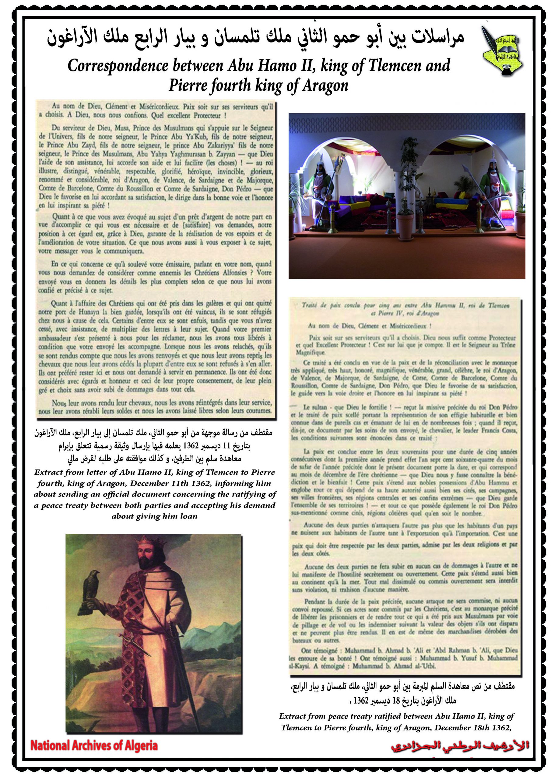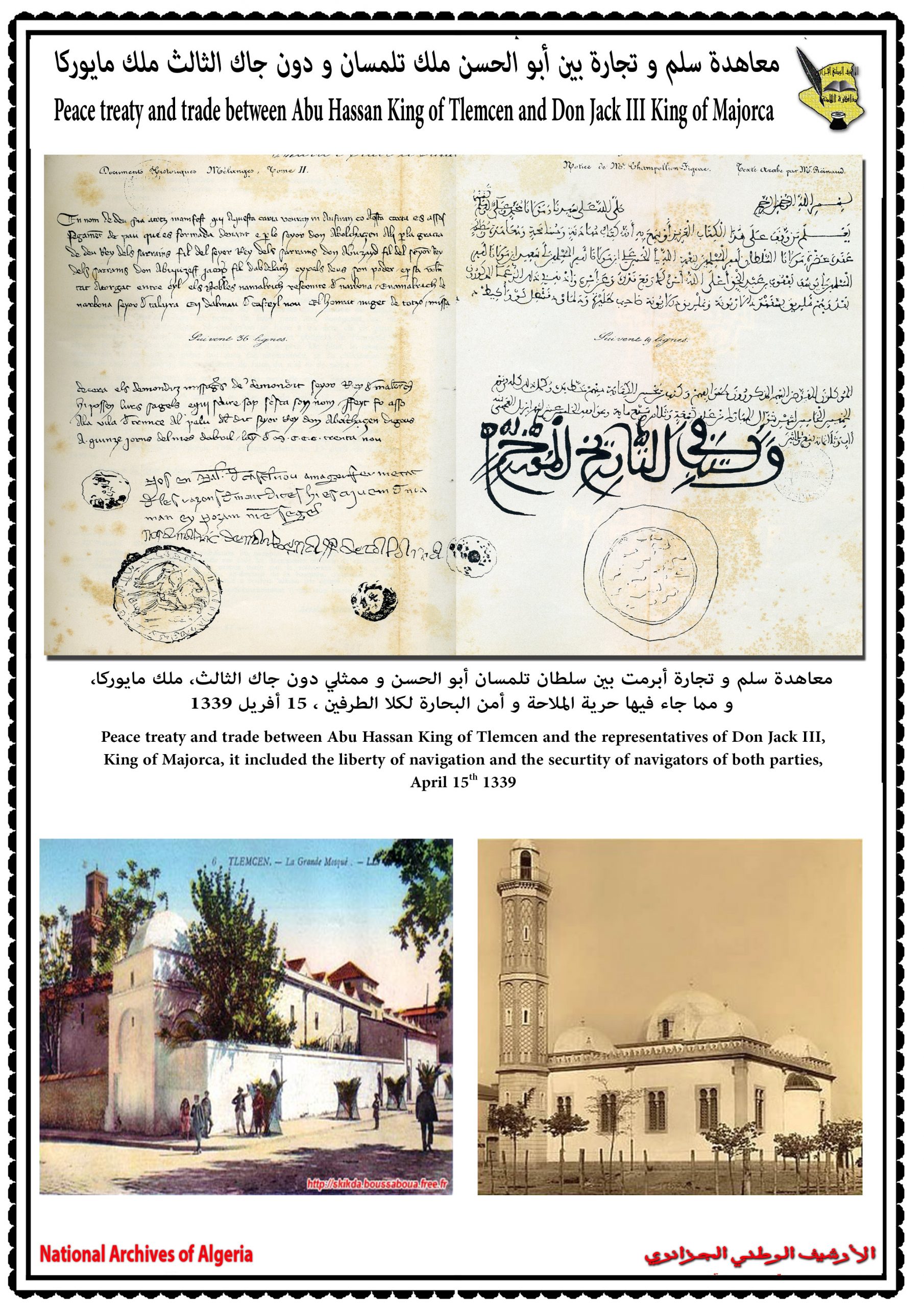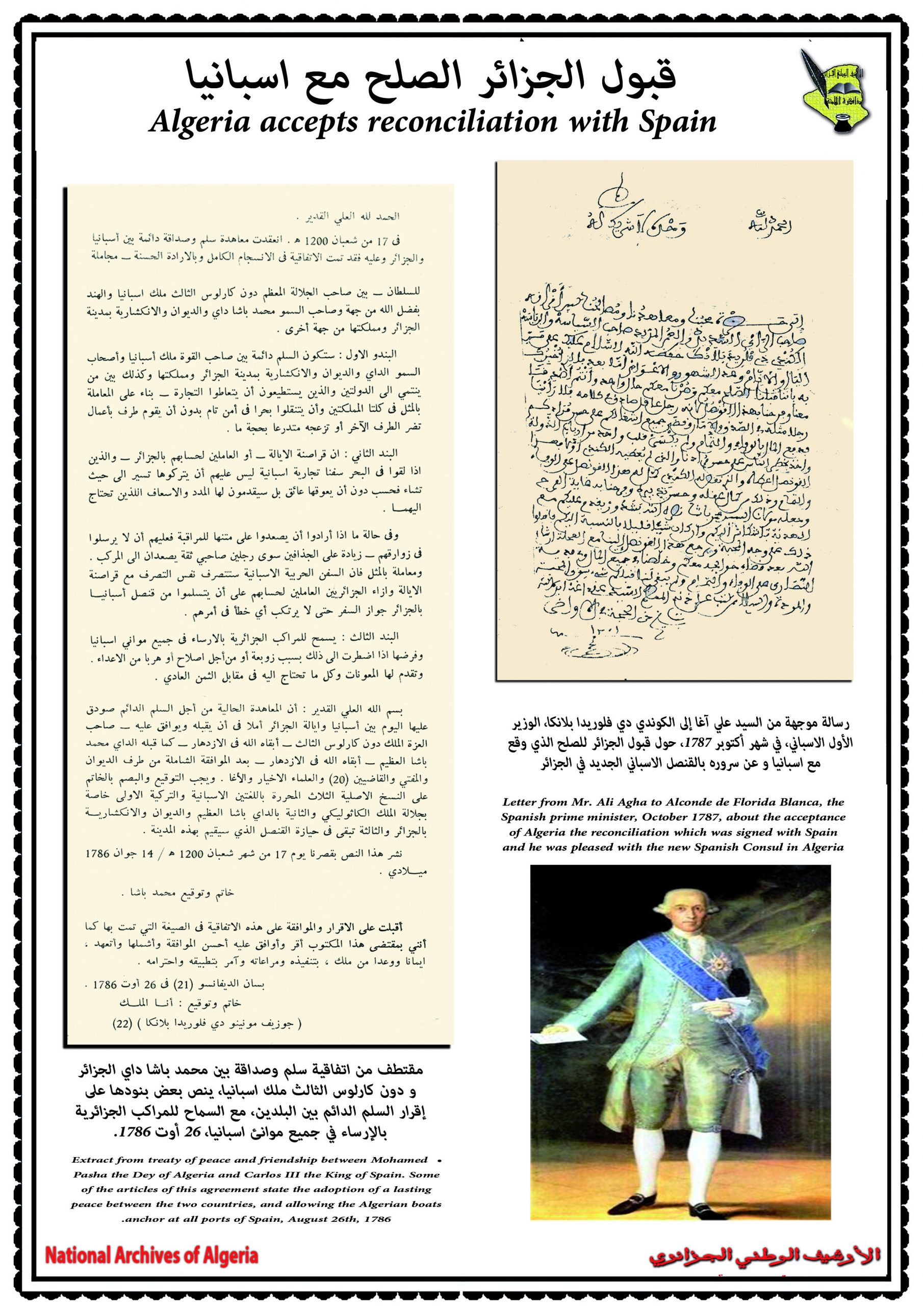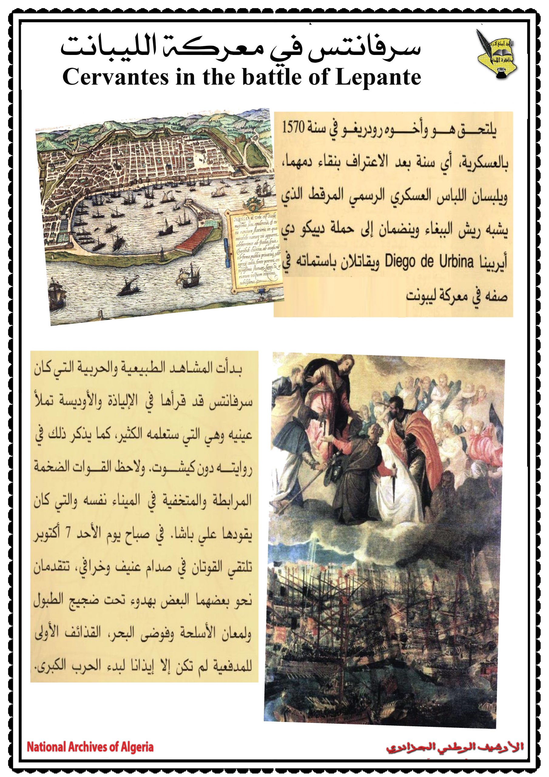 احتضنت عاصمة الزيانيّين تلمسان يومي 17 و 18 جوان 2014 فعّاليات الندوة العلمية التي سلّطت الضوء على العلاقات الجزائرية الاسبانية في فترة الكاتب “ميغل دي سيرفانتس”، بمشاركة ثلّة من المؤرخين الاكادميّين والباحثين كل من اسبانيا والبرتغال وتركيا وتونس والجامعات الوطنية والذي بلغ عددهم ستة عشر محاضرا تمّ تقسيمهم إلى خمس جلسات علمية حيث تطرق المشاركون في هذه الندوة الدولية إلى مواضع متعددة و مختلفة نذكر منها إدراك الشخصية الدرامية في كتاب (EL trato de Algel).