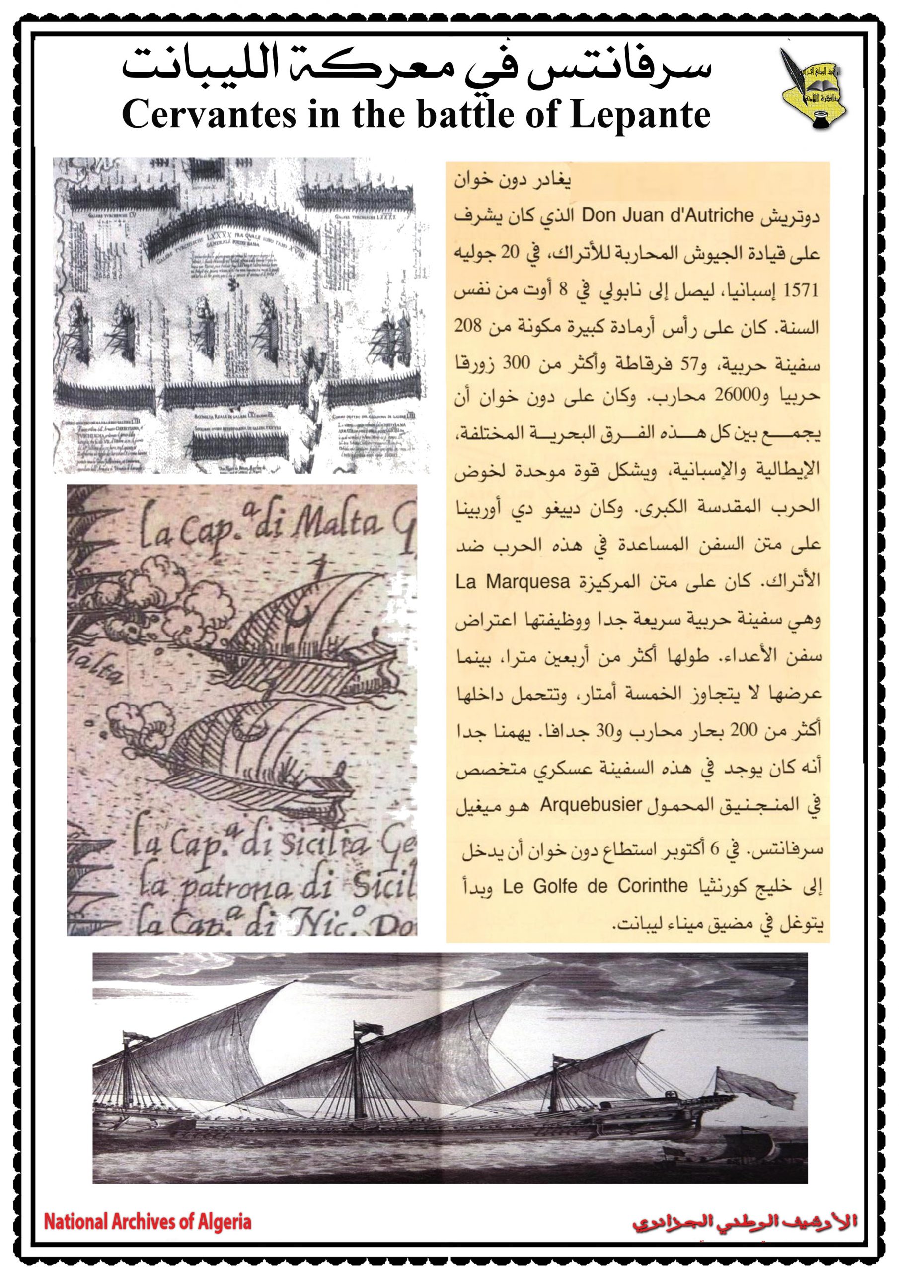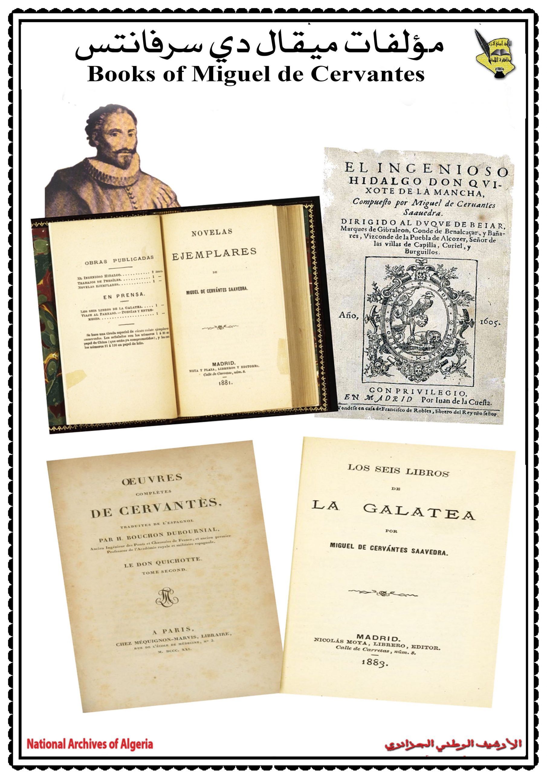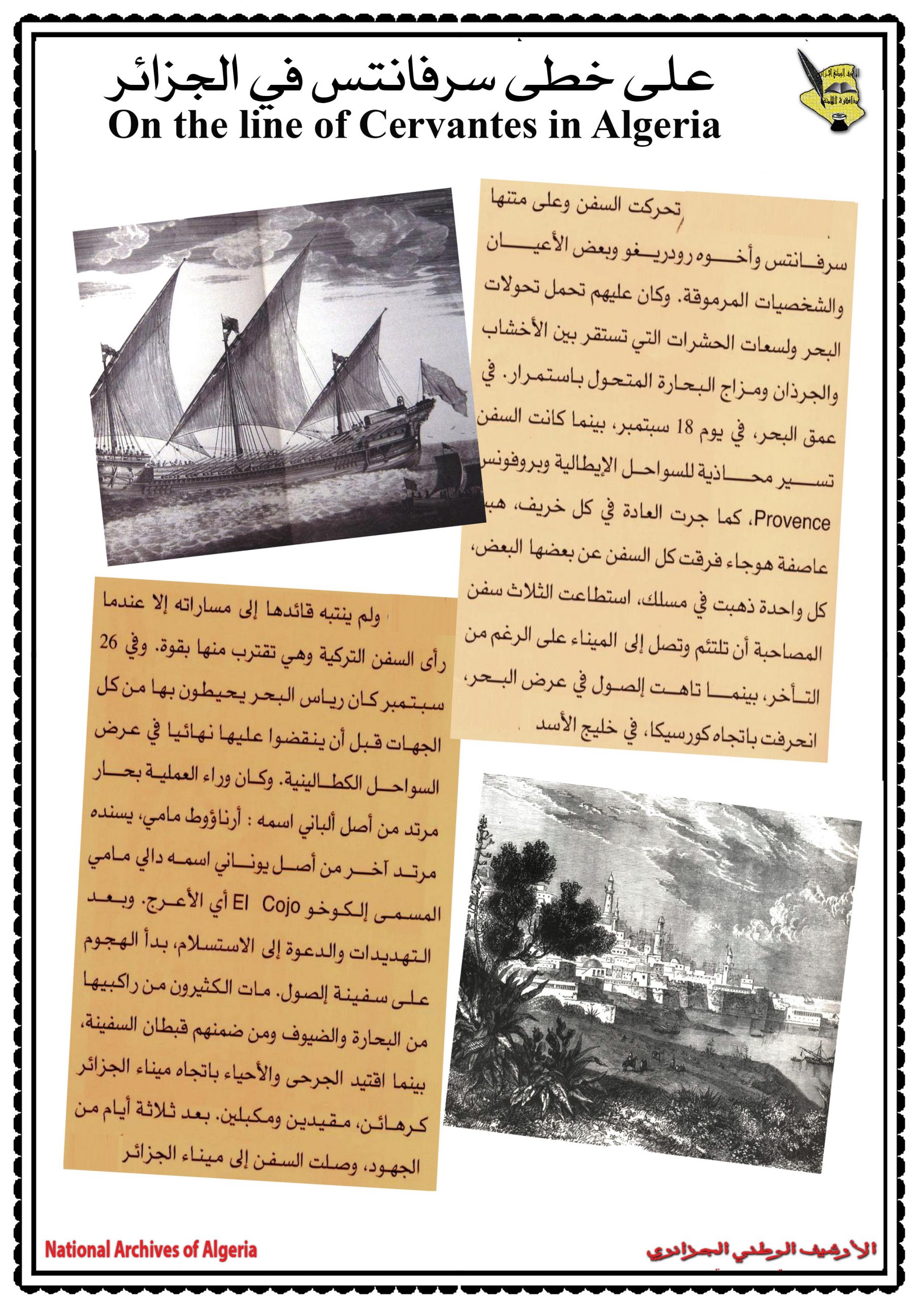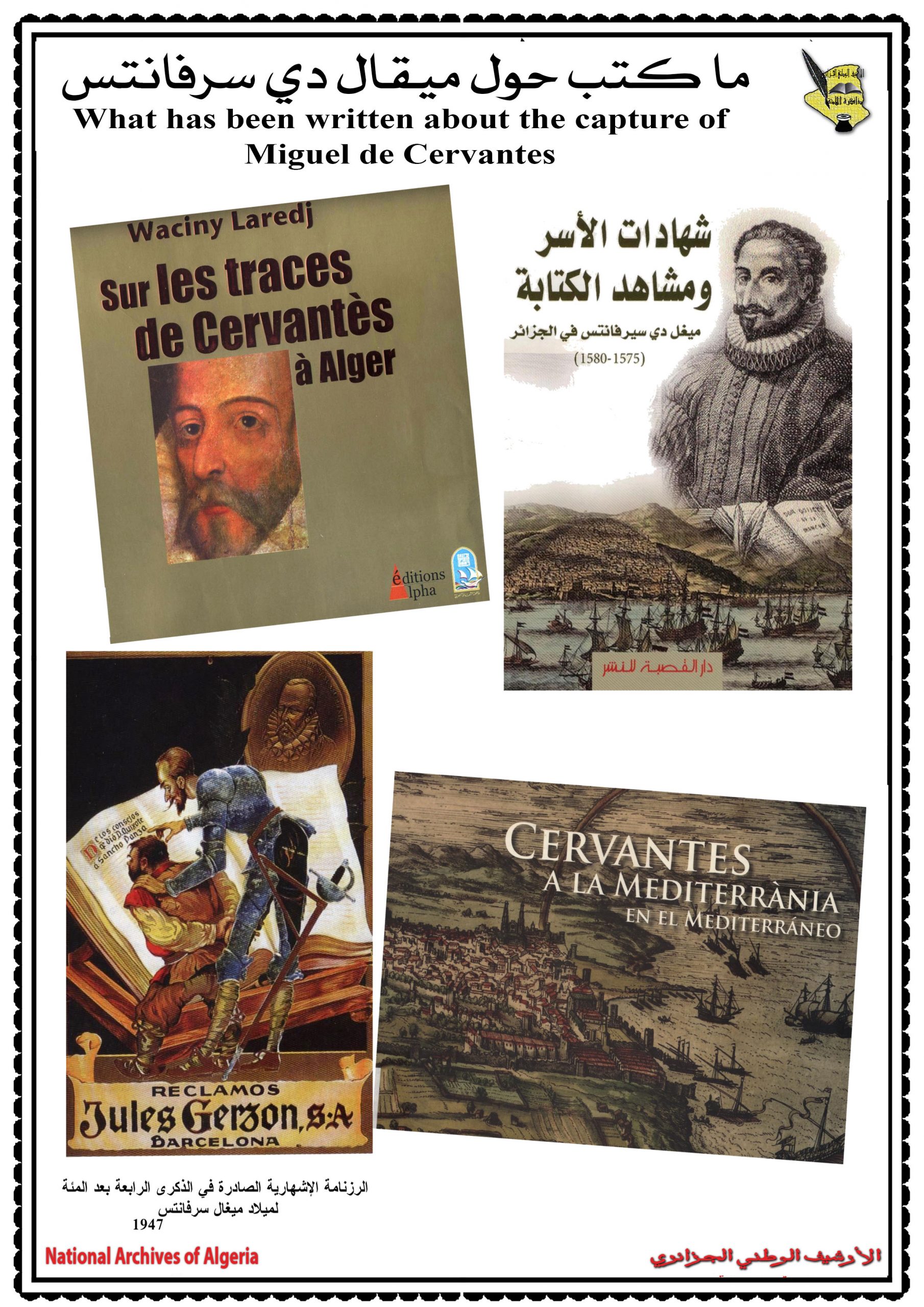 لميغال دي سيرفانتس، ومقاطعة الجزائر بين فشل التوسع الاسباني والهيمنة العثمانية في عهد سيرفانتس، والجزائر في الأرشيف البرتغالي، ثمّ الساحل الجزائري فضاء طموحات وخيبة أمل للأسبان في عهد ميغال دي سيرفانتس.